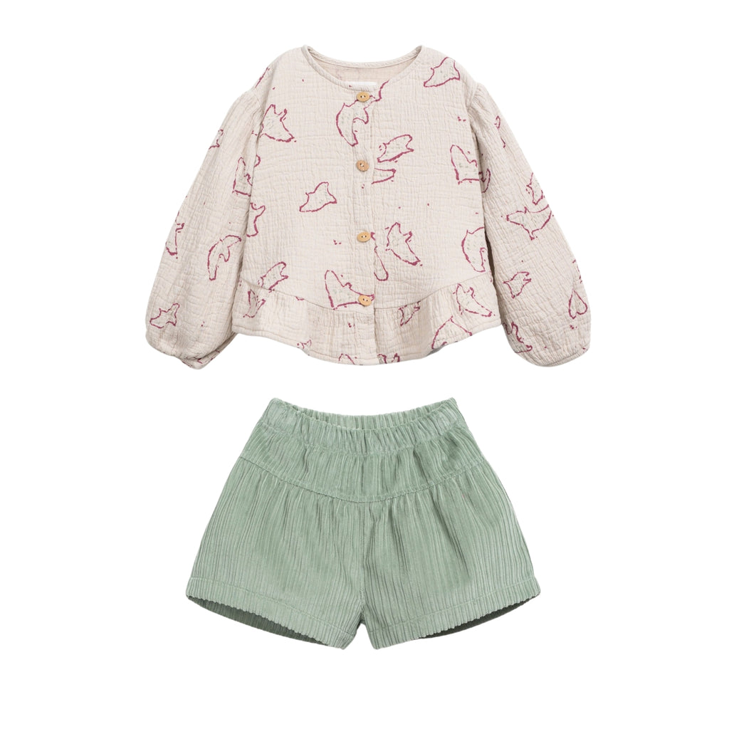 Muslin Birdie Blouse & Corduroy Grass Shorts