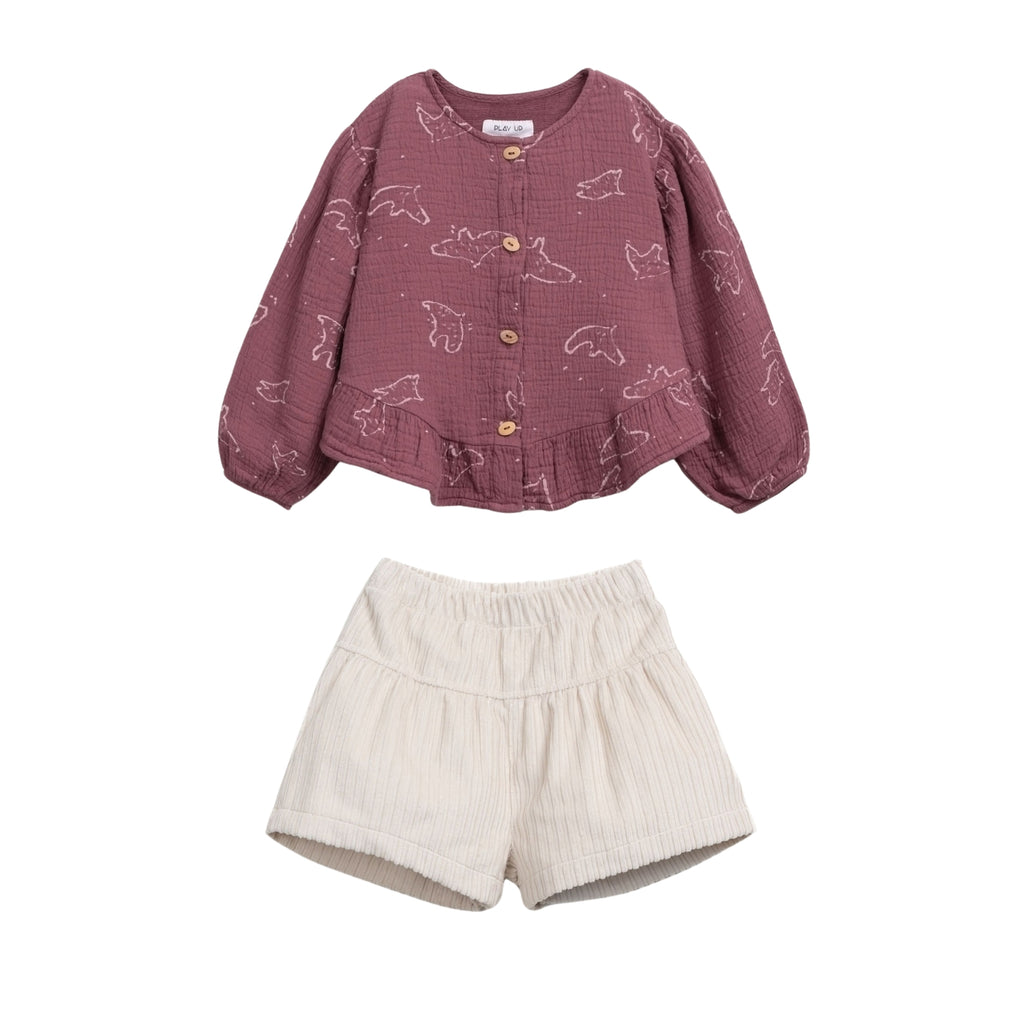 Muslin Birdie Blouse & Corduroy Neutural Shorts