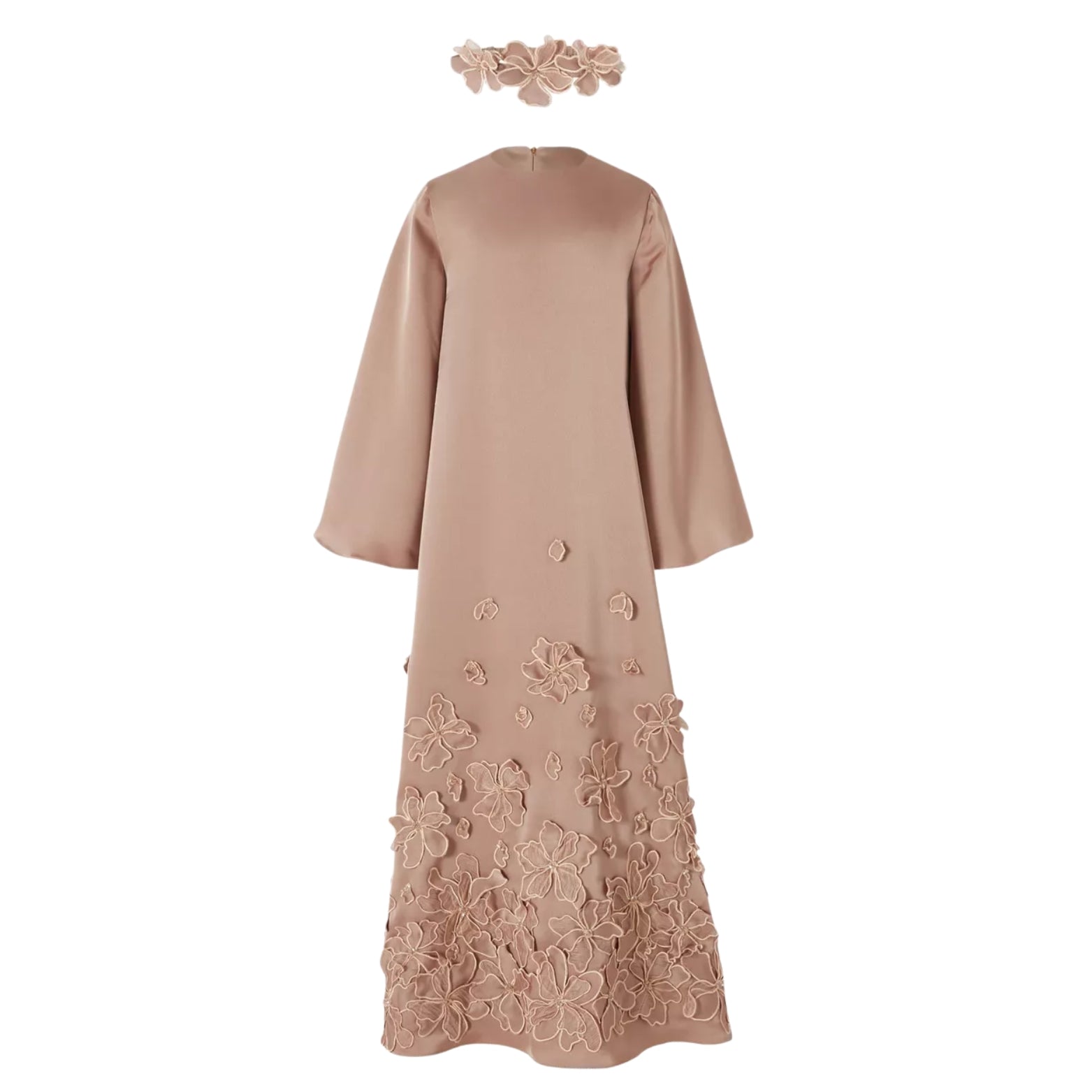 3D Floral-applique A-line Kaftan & Headband | Brown