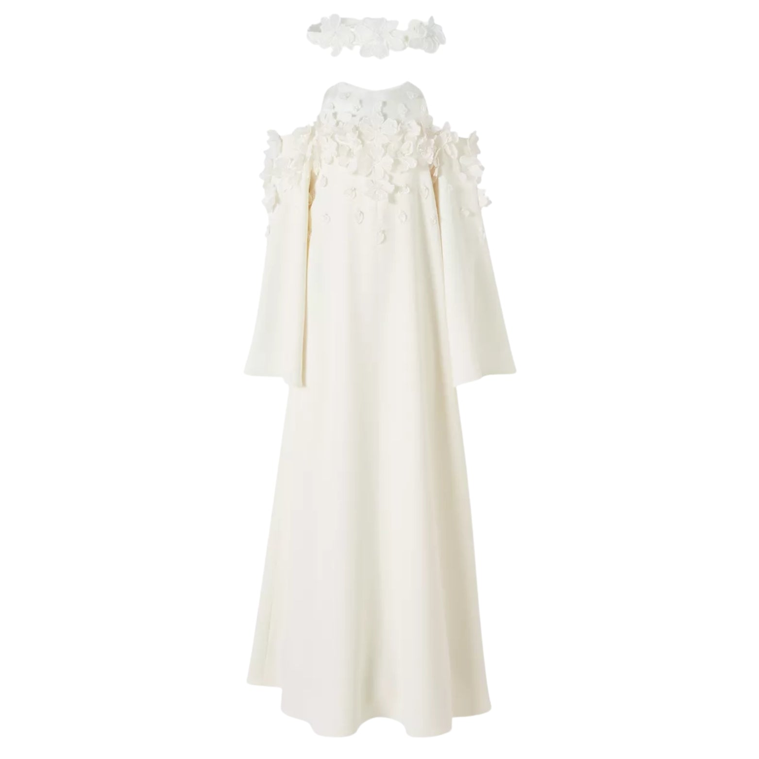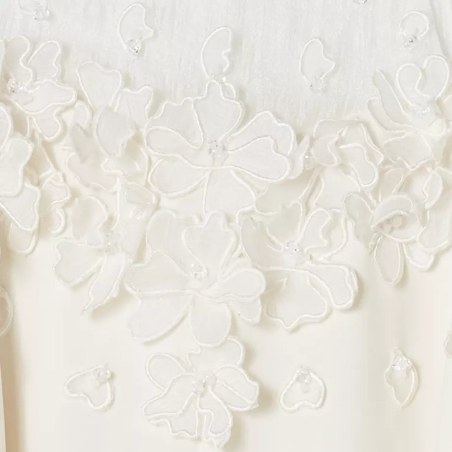 3D Floral-applique A-line Kaftan & Headband | Pearly White