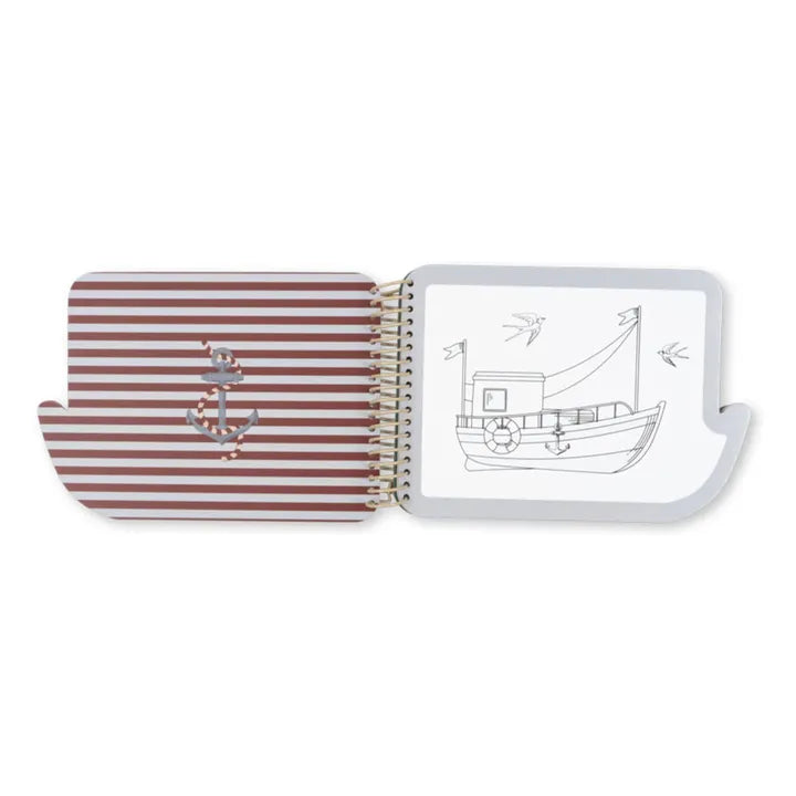- Magic water book with seven coloring boards and a refillable water brush pen. Designed with reusable pages with simple line drawings that reveal colors when wet.