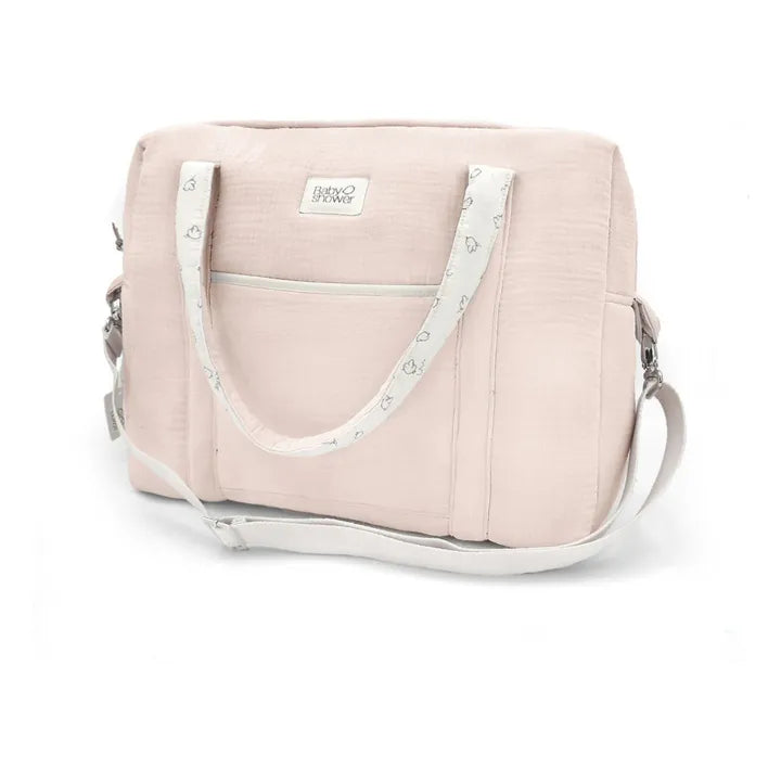- Maternity bag for the baby, ideal for going to the hospital or for weekends. With interior pockets and handle withstraps adjustable to the carrycoat. Lined with organic cotton fabric.