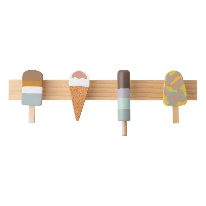 - The Ice cream Coat Rack from Bloomingville MINI is made of pine wood and decorated with ice creams and popsicle in different colors and shapes. The coat rack is perfect for a child's bedroom, where you can hang little jackets, bags or other small accessories. The coat rack comes in a pretty gift box