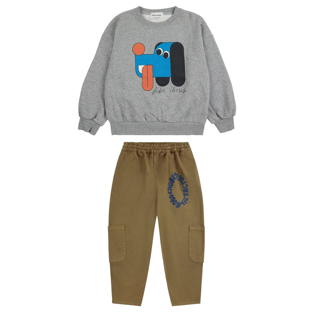 Gray Doggy Sweatshirt & Cargo Tic Tac Toe Pants