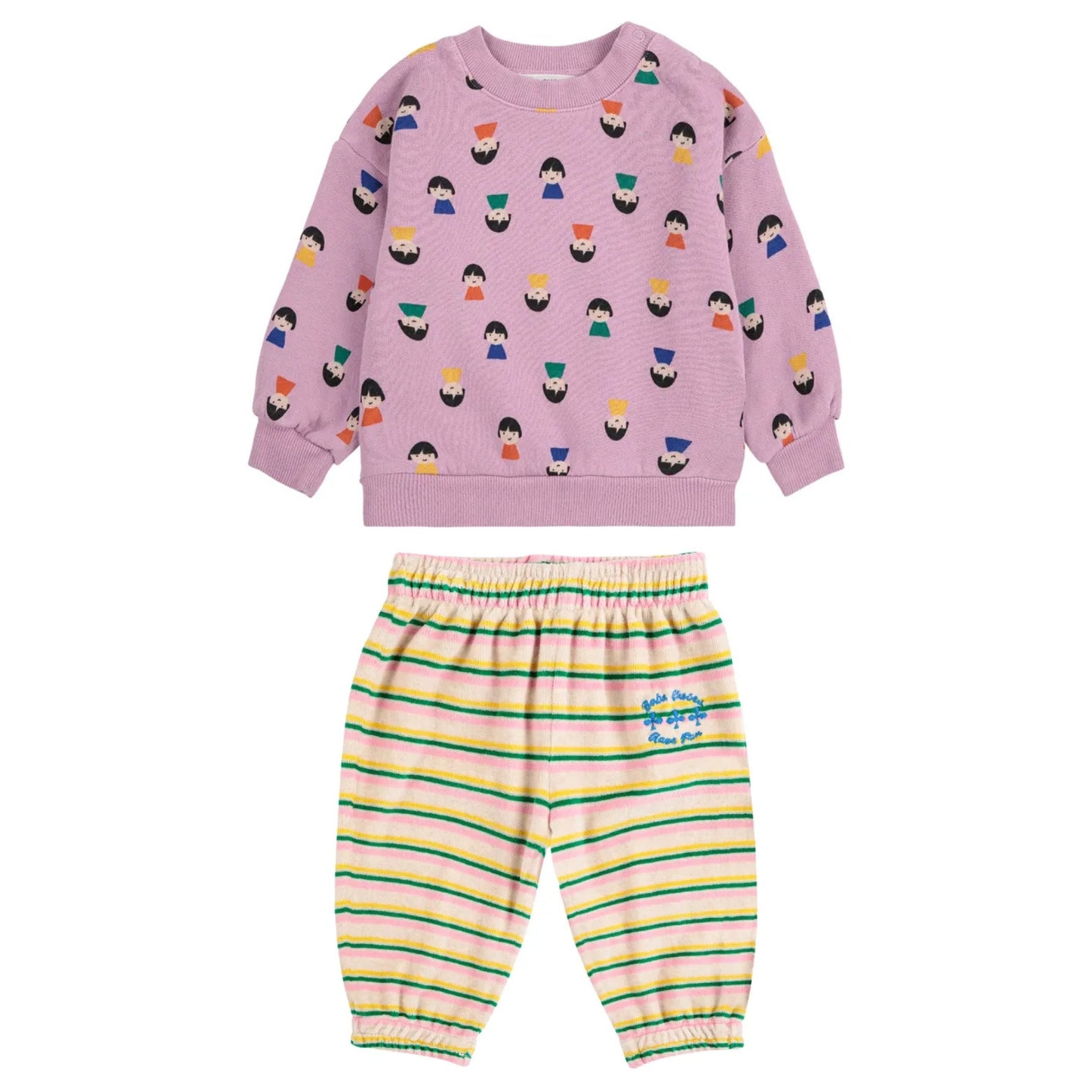 Baby Lilac Pions Sweatshirt & Striped Velvet Jogger