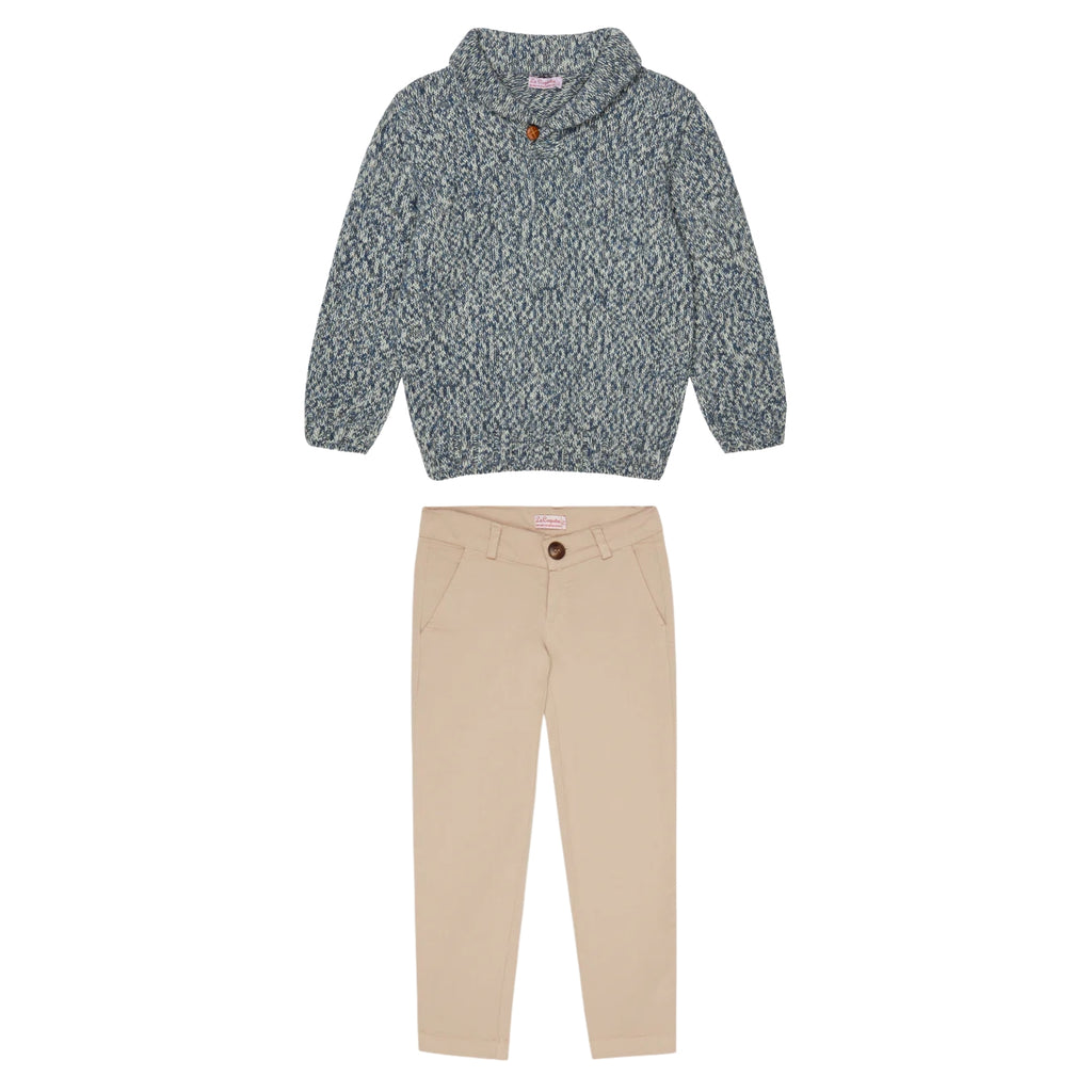 Blue Merino-blend Boy Jumper & Beige Chinos
