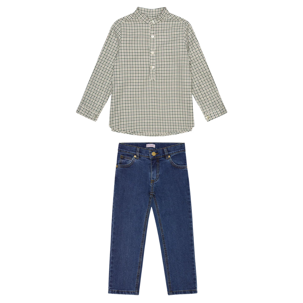 Green Check Jazmin Cotton Long Sleeve Shirt & Blue Romeo Jeans