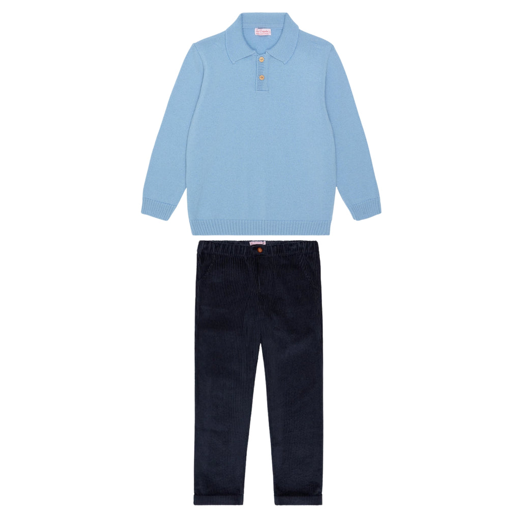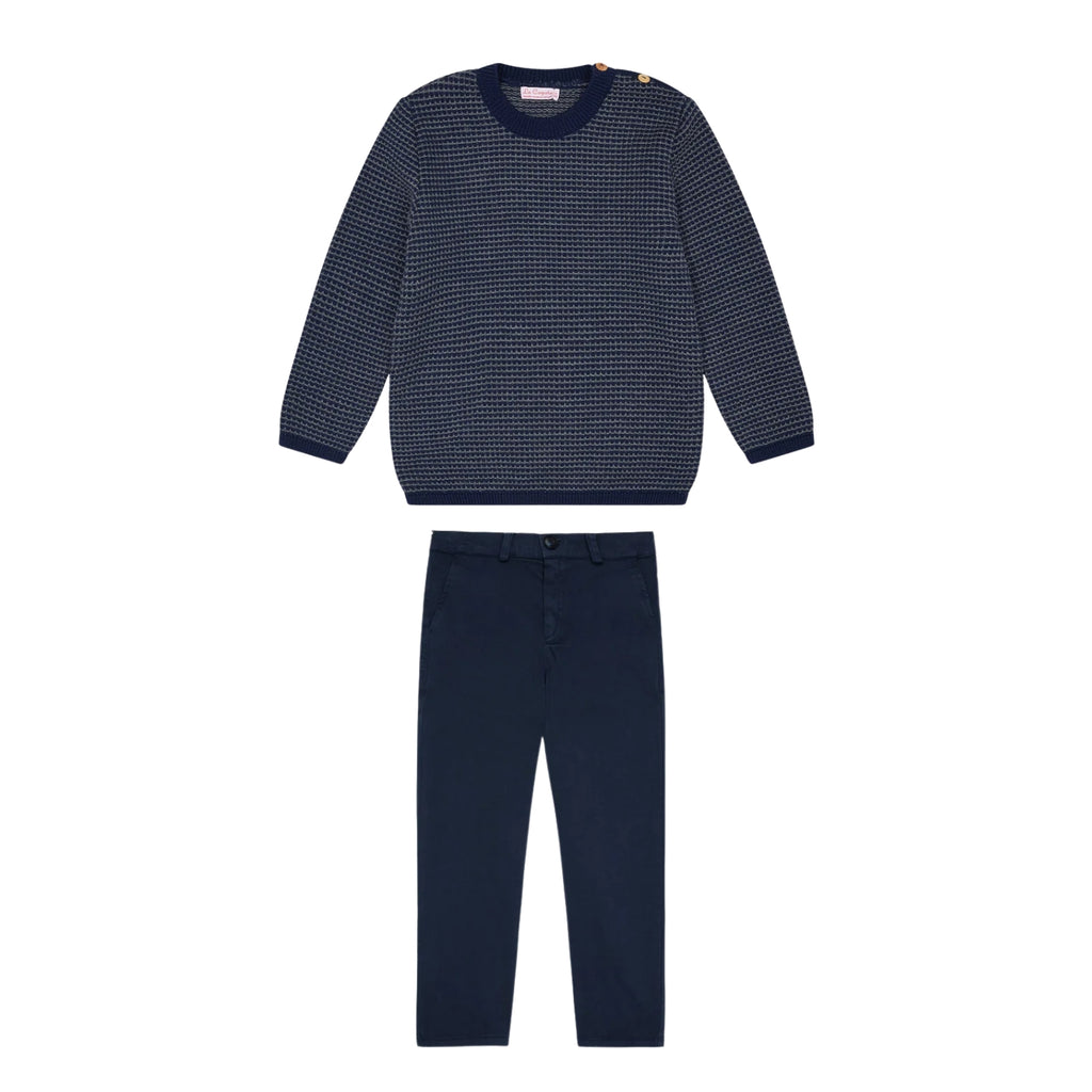 Blue Merino-wool Jacquard Boy Jumper & Navy Chinos