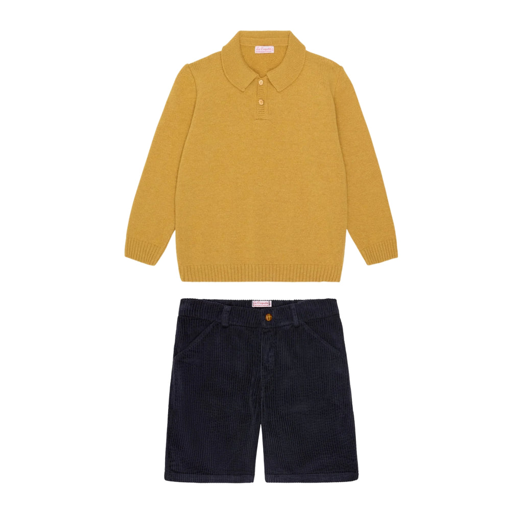 Mustard Merino Polo Jumper & Navy Corduroy Shorts