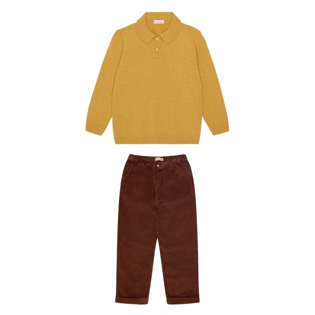 Mustard Merino Polo Jumper & Toffee Corduroy Trousers