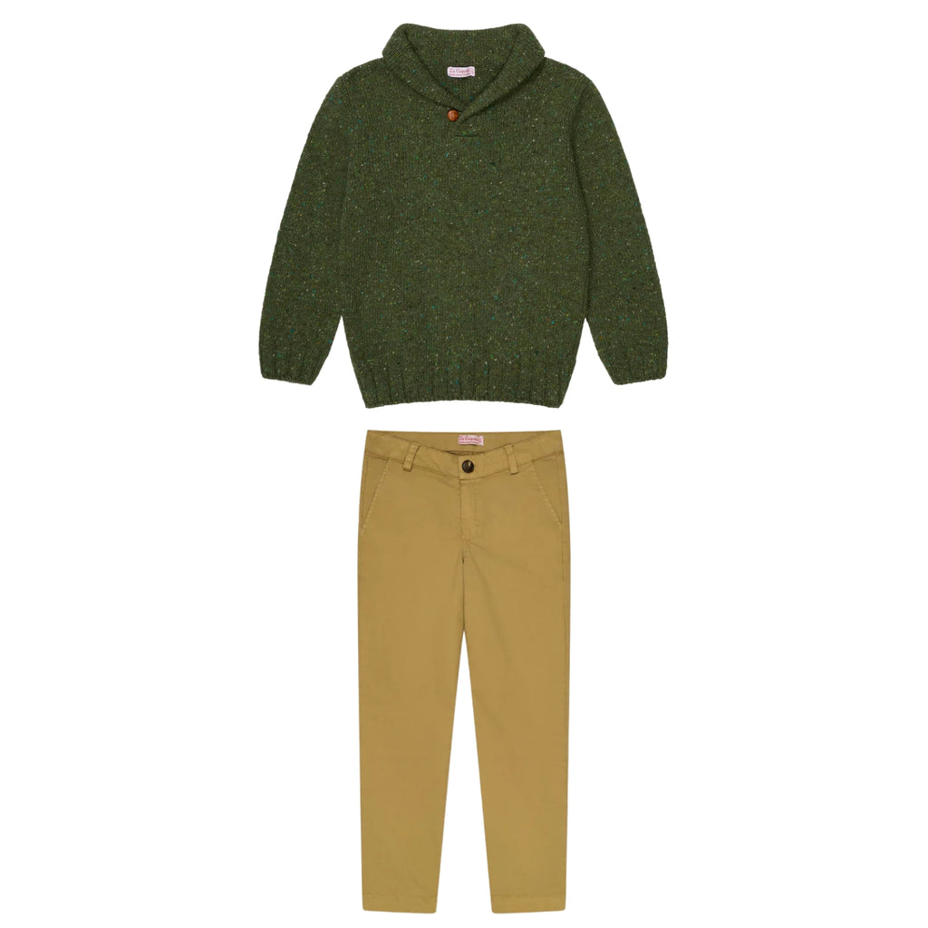 Olive Green Merino-blend Boy Jumper & Oyster Stone Chinos