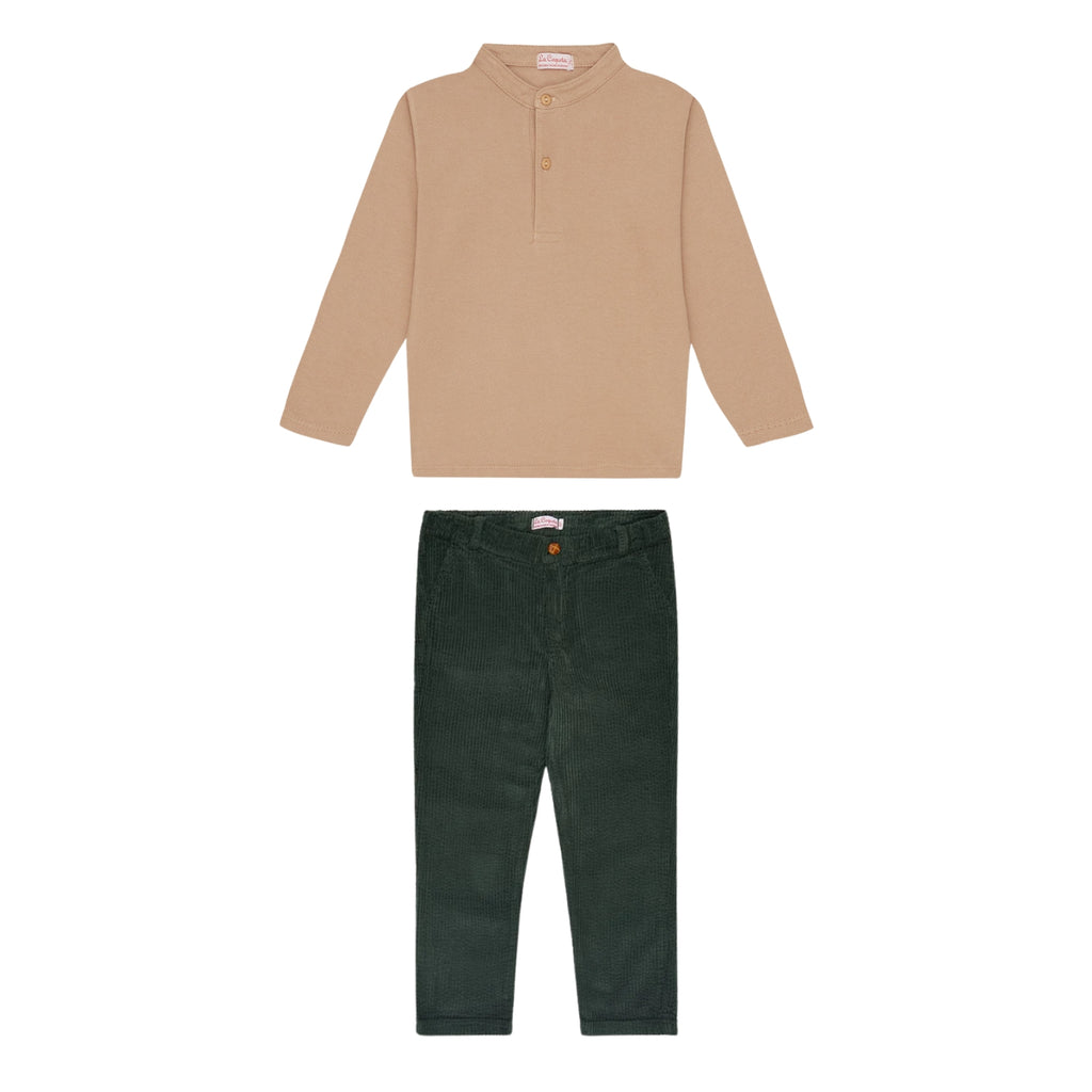 Camel L/Sleeves Kurta Shirt & Olive Green Corduroy Trousers