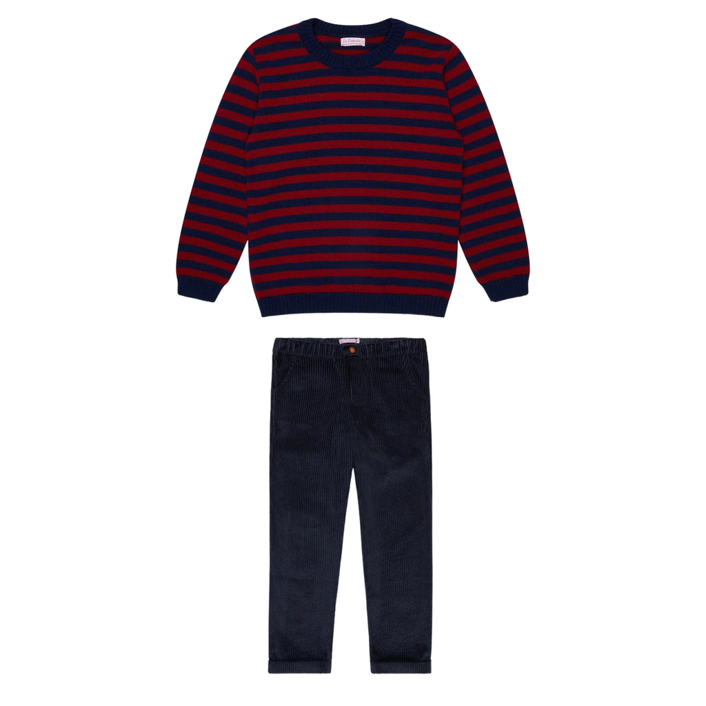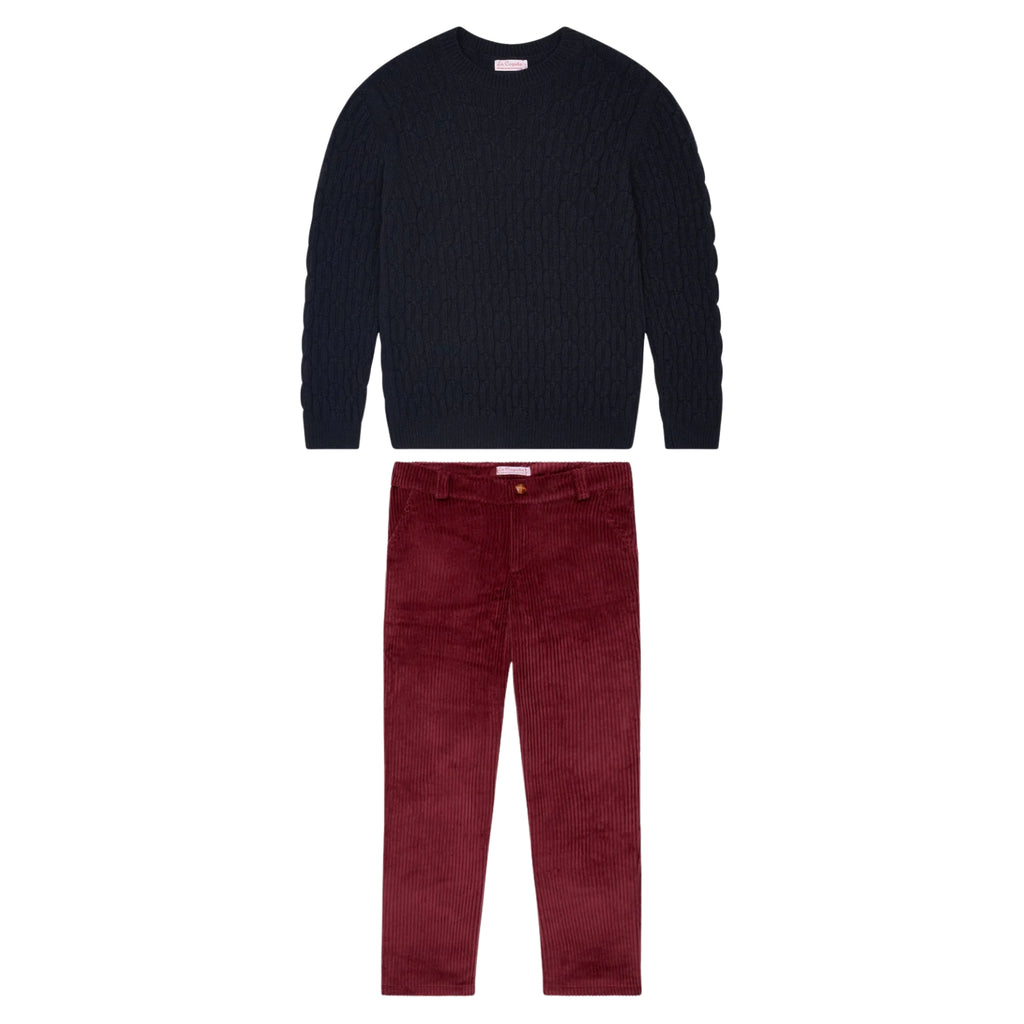 Navy Teo Merino-blend Jumper & Burgundy Corduroy Trousers