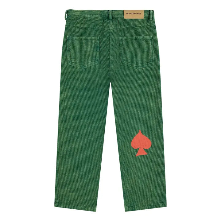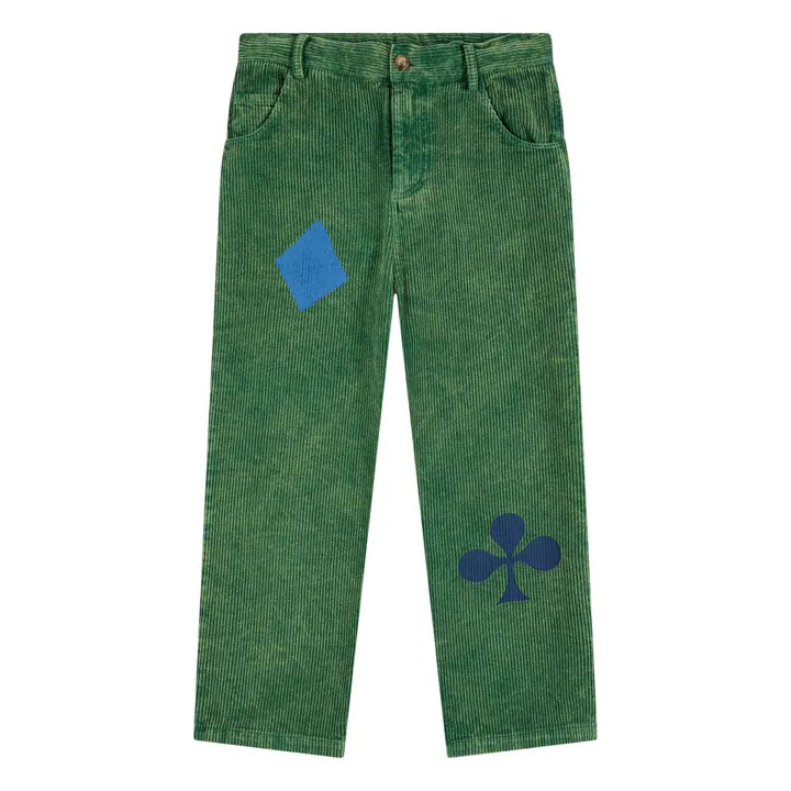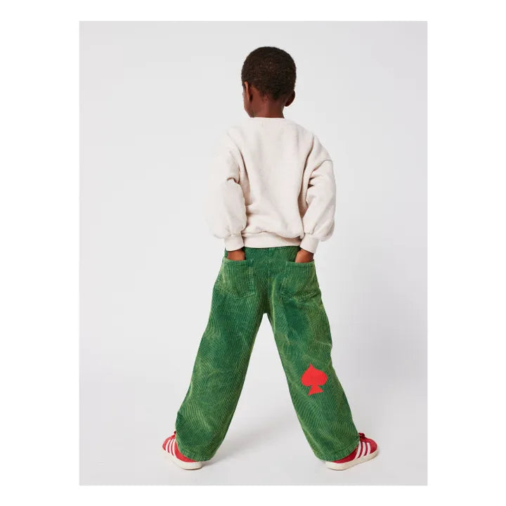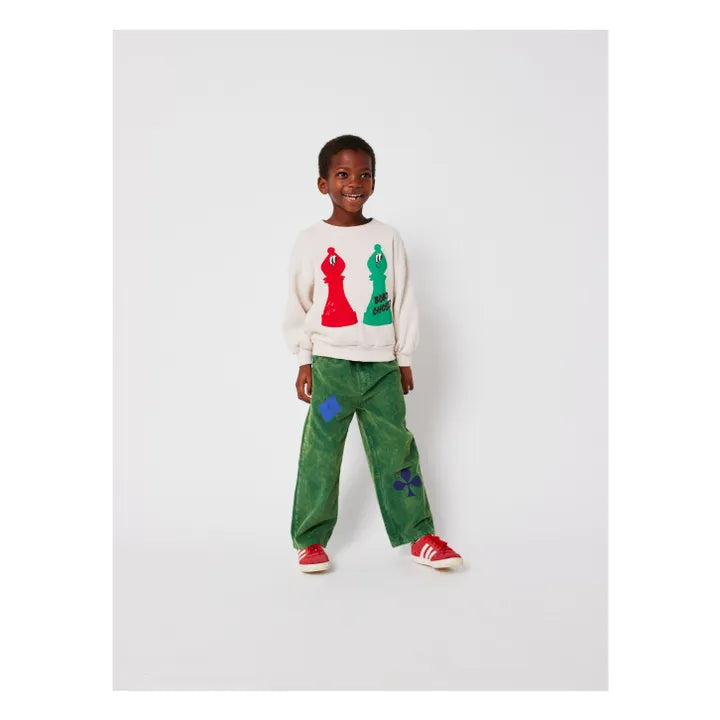 Beige Chess Sweatshirt & Green Corduroy Panel Pants