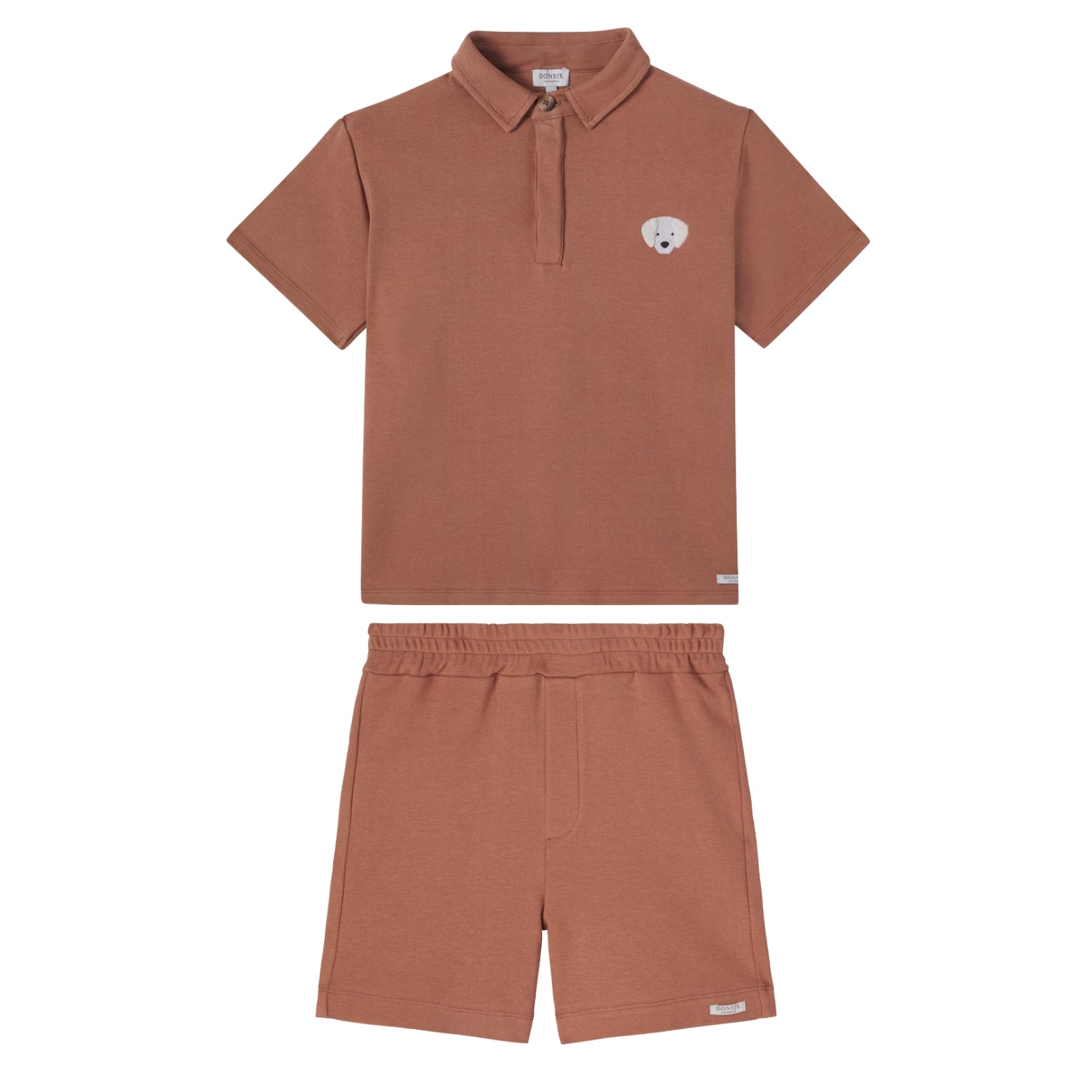 Embroidered cotton-blend Piqué Polo Tshirt & Shorts | Rust