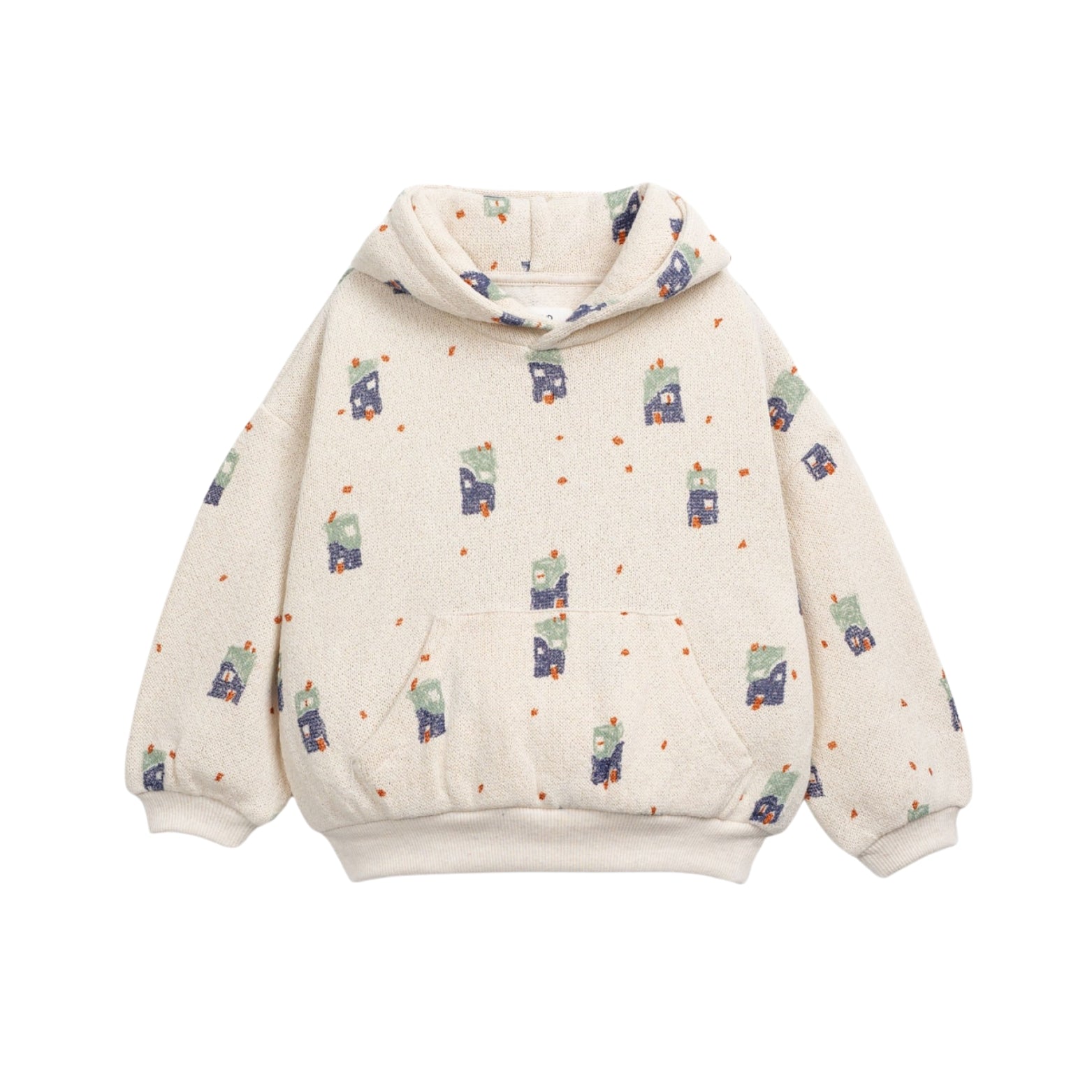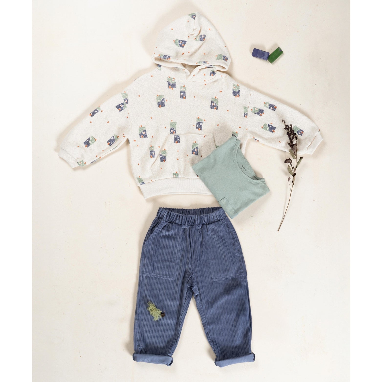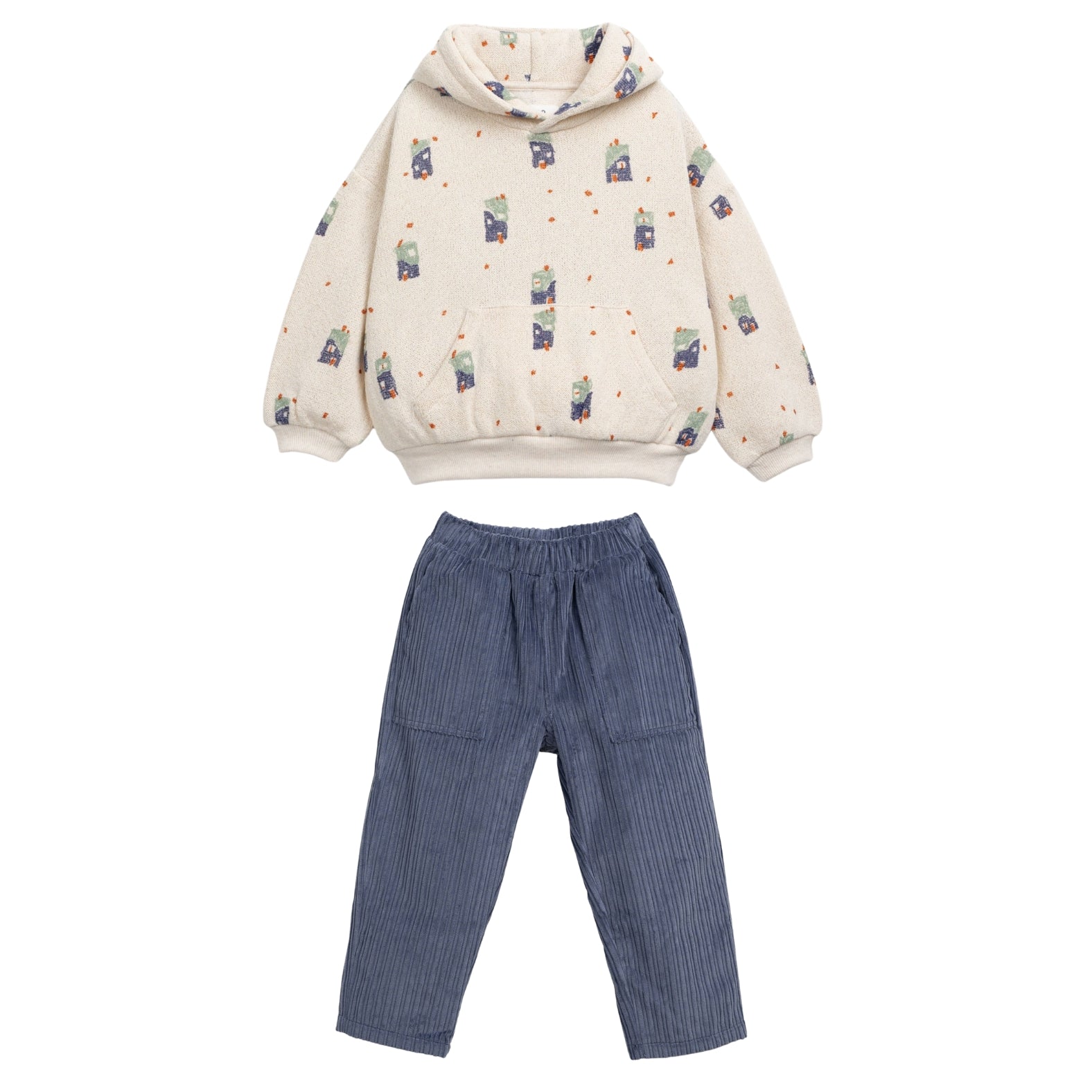 Houses Print Fiber Knit Hoodie & Corduroy Blue Pants