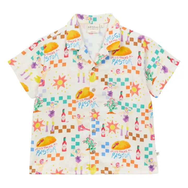 - Exclusive lucha libre printed magnum. - 100% cotton poplin fabric. - Magnum cut. - Button front opening. - Short sleeves. - Patch pocket on chest. - Small slits on sides.
