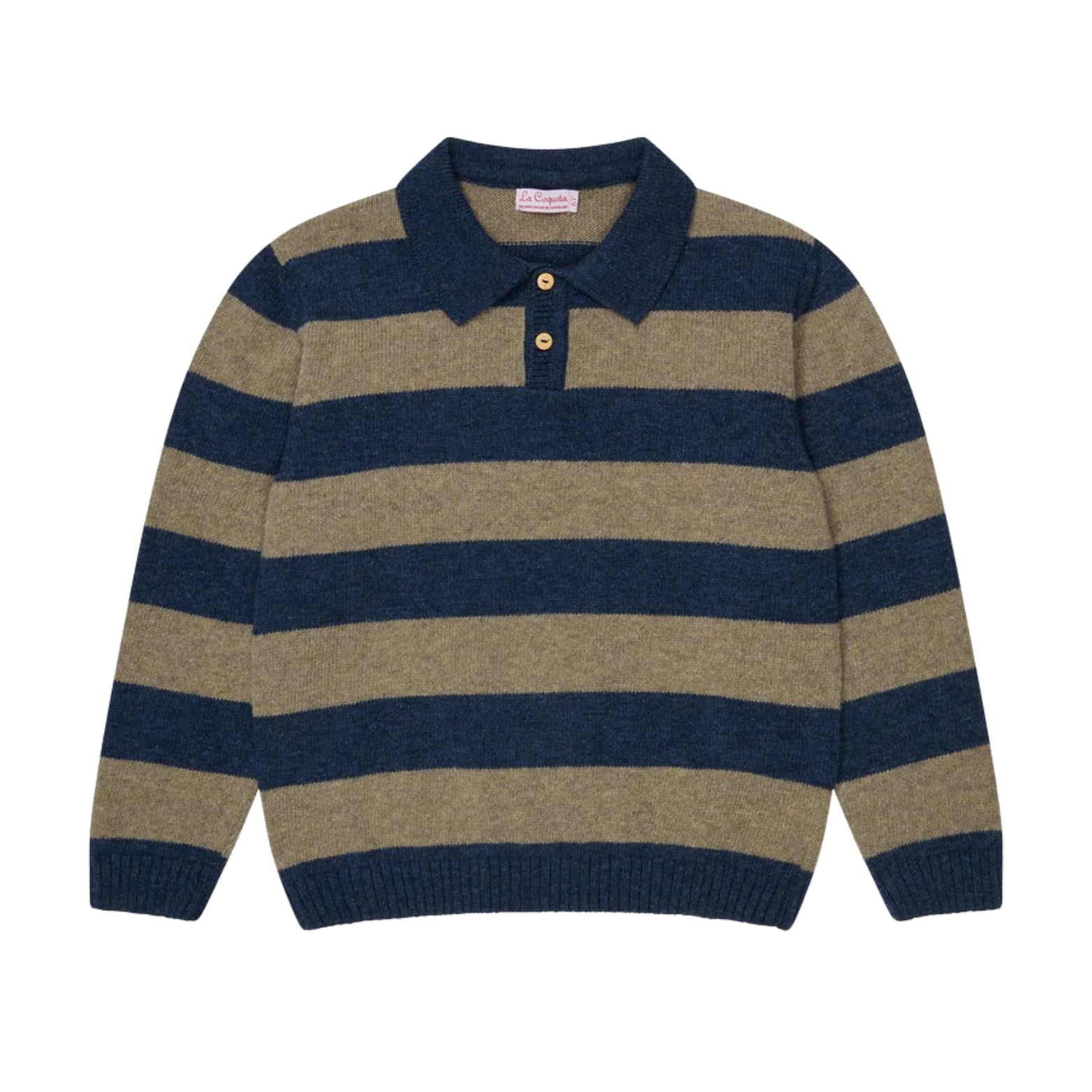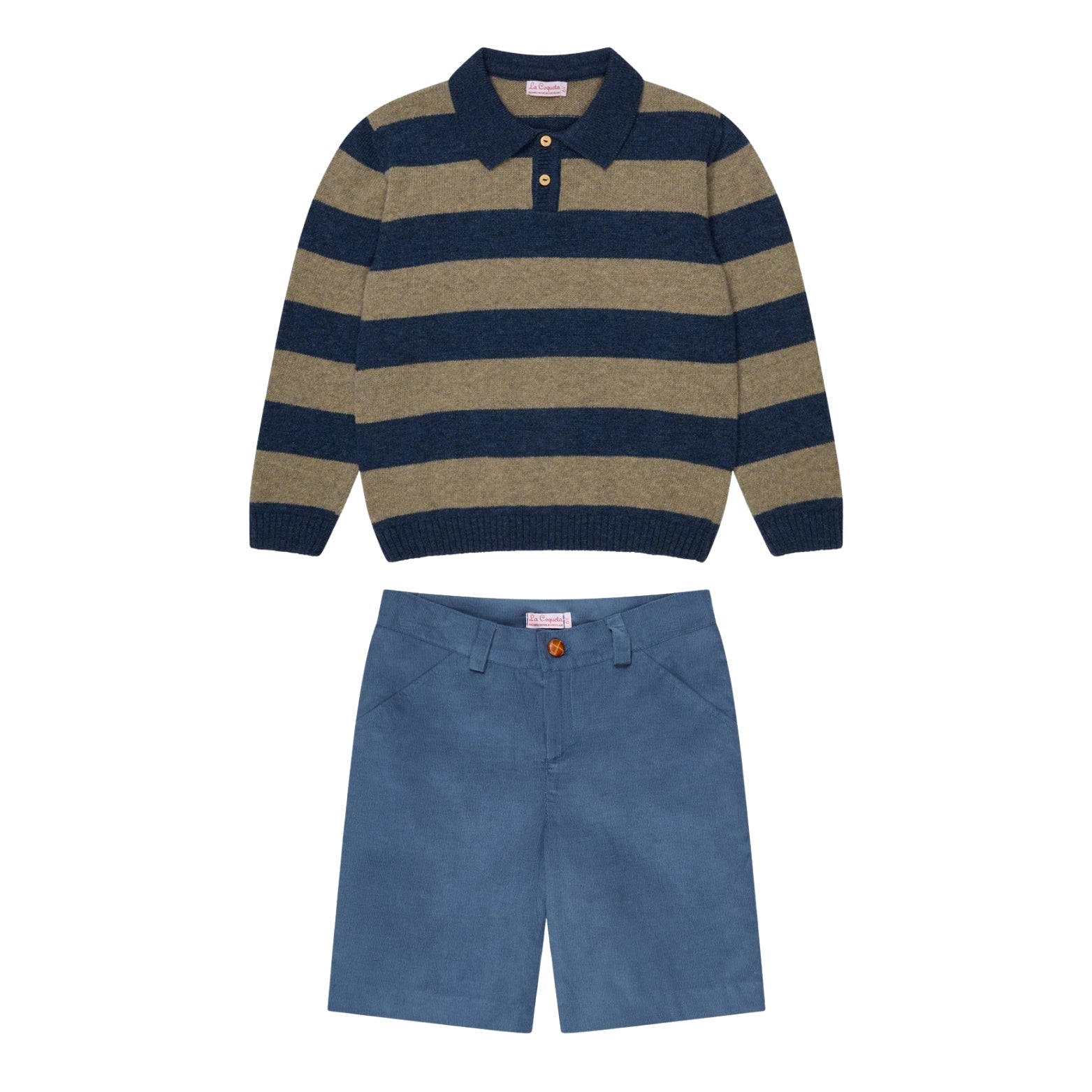 Taupe Stripe Merino-wool Polo Jumper & Blue Corduroy Shorts