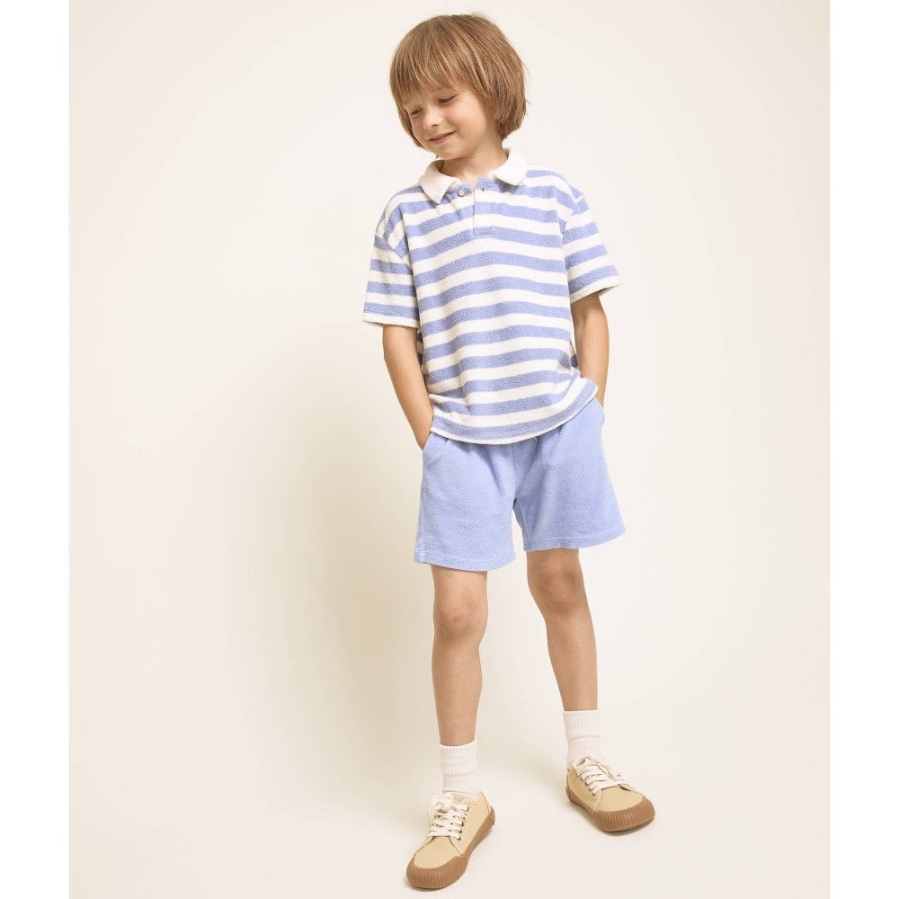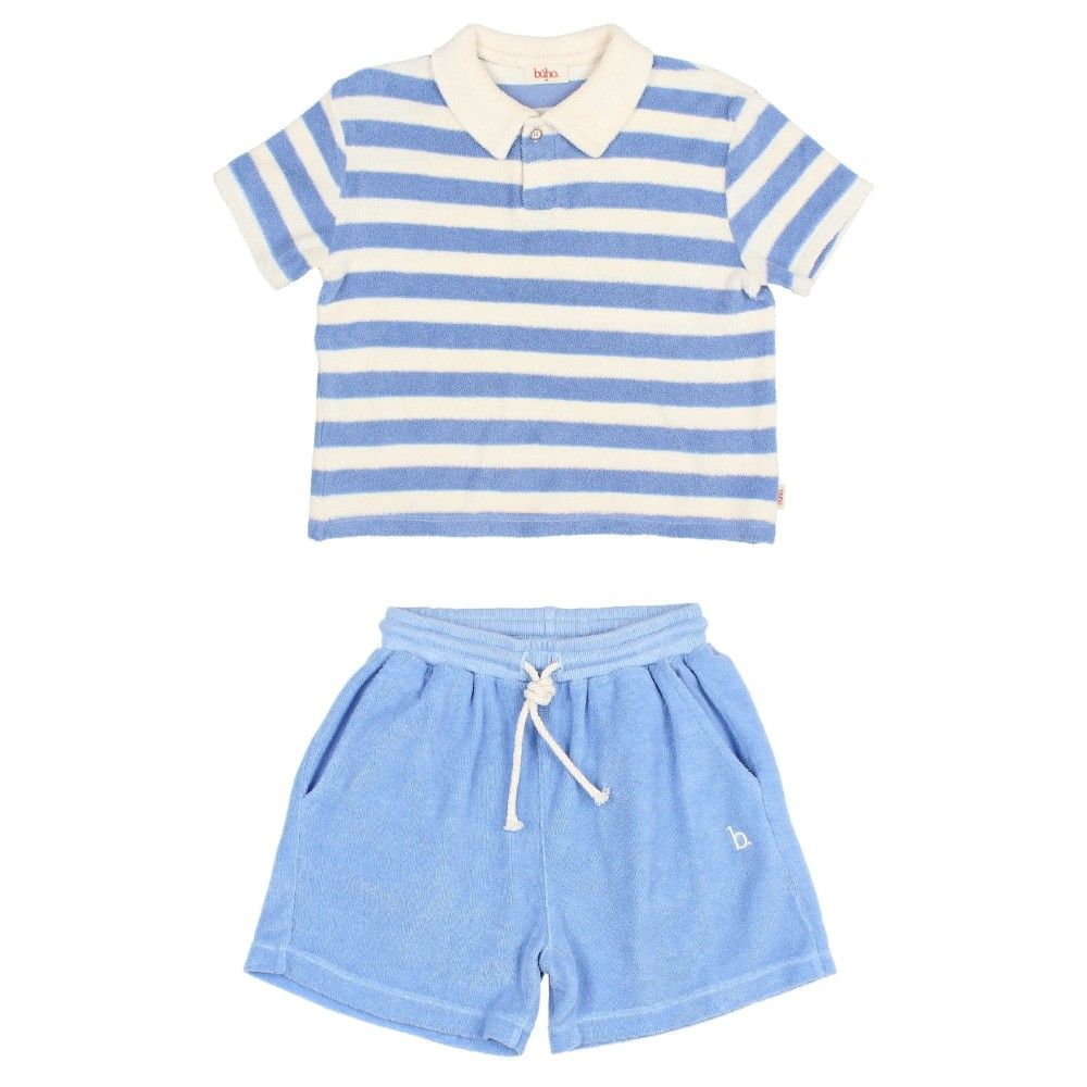 Terry Stripes Polo & Terry Bermuda Jogger Bluette