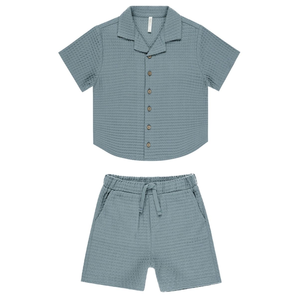 This button-up boys shirt in our textured waffle knit features a classy lapel collar.