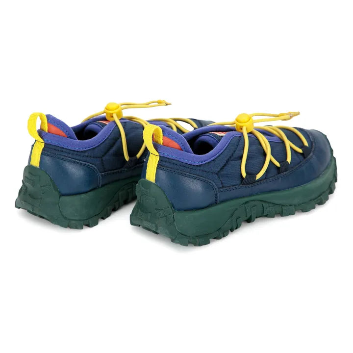 Kids' technical sneakers made with recycled materials, rubber outsoles, and hook-and-loop closure.