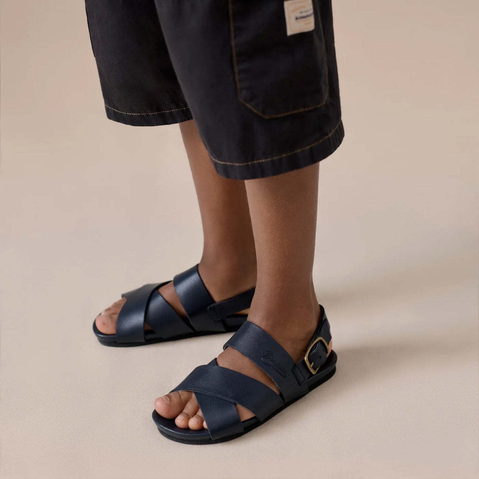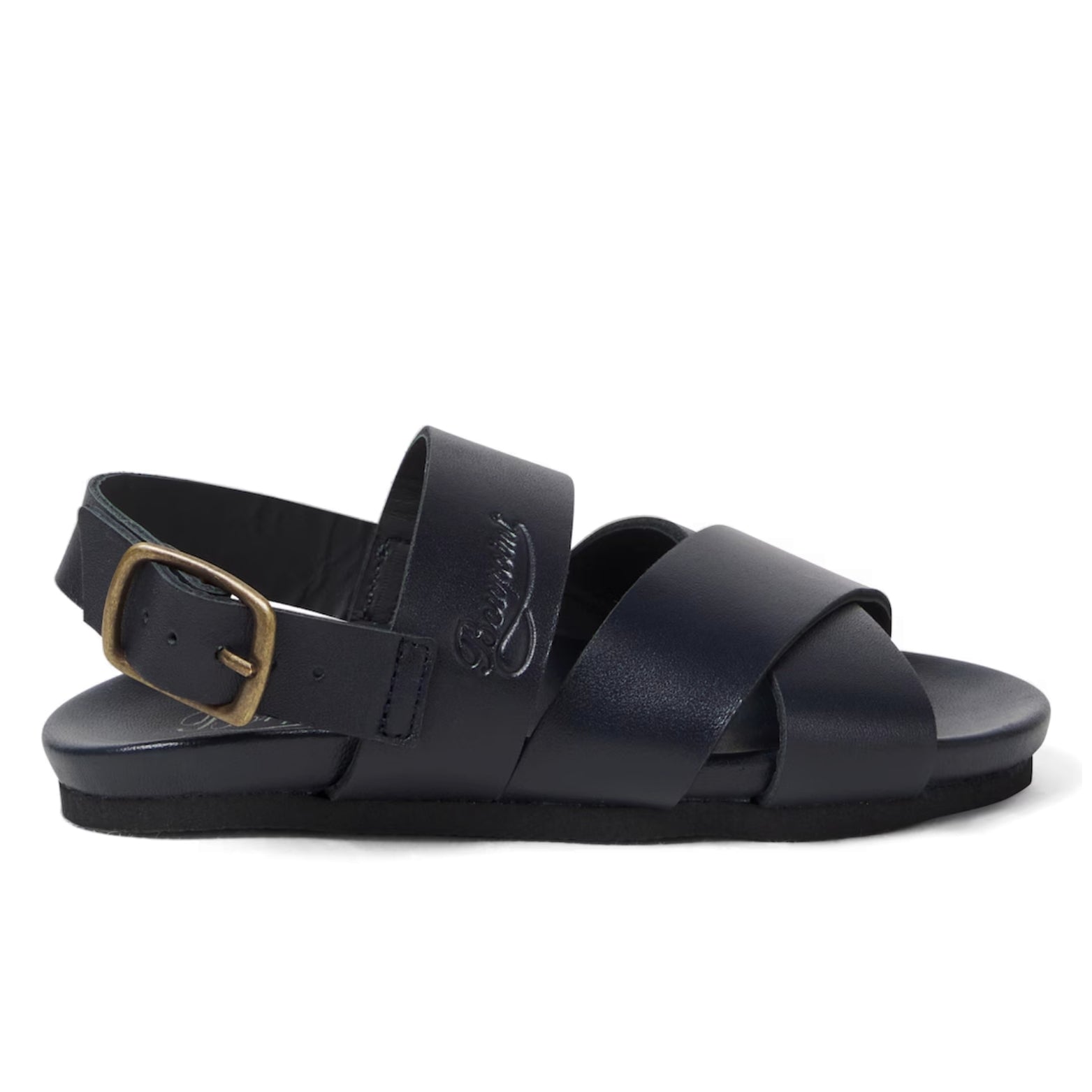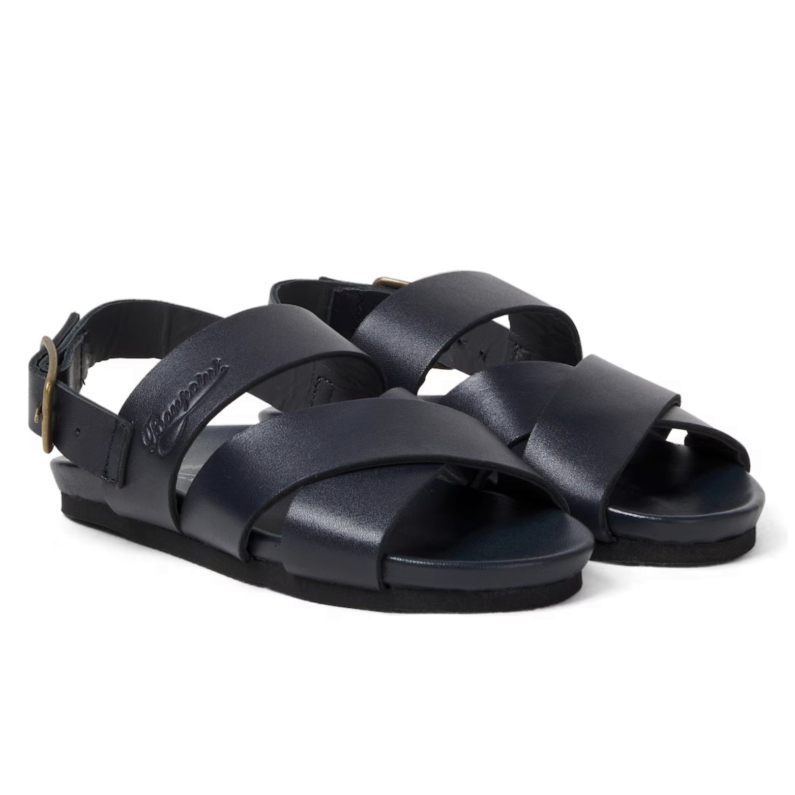 Holiday looks have never been more comfortable with the sandals from Bonpoint. The blue pair is made from leather with crisscrossed straps and buckle fastenings.