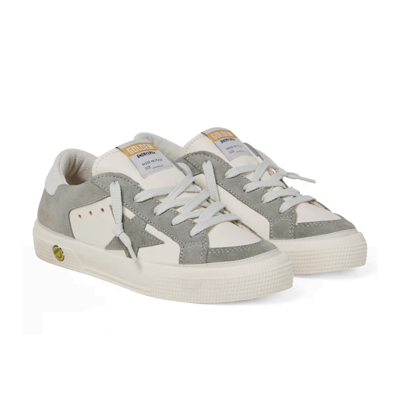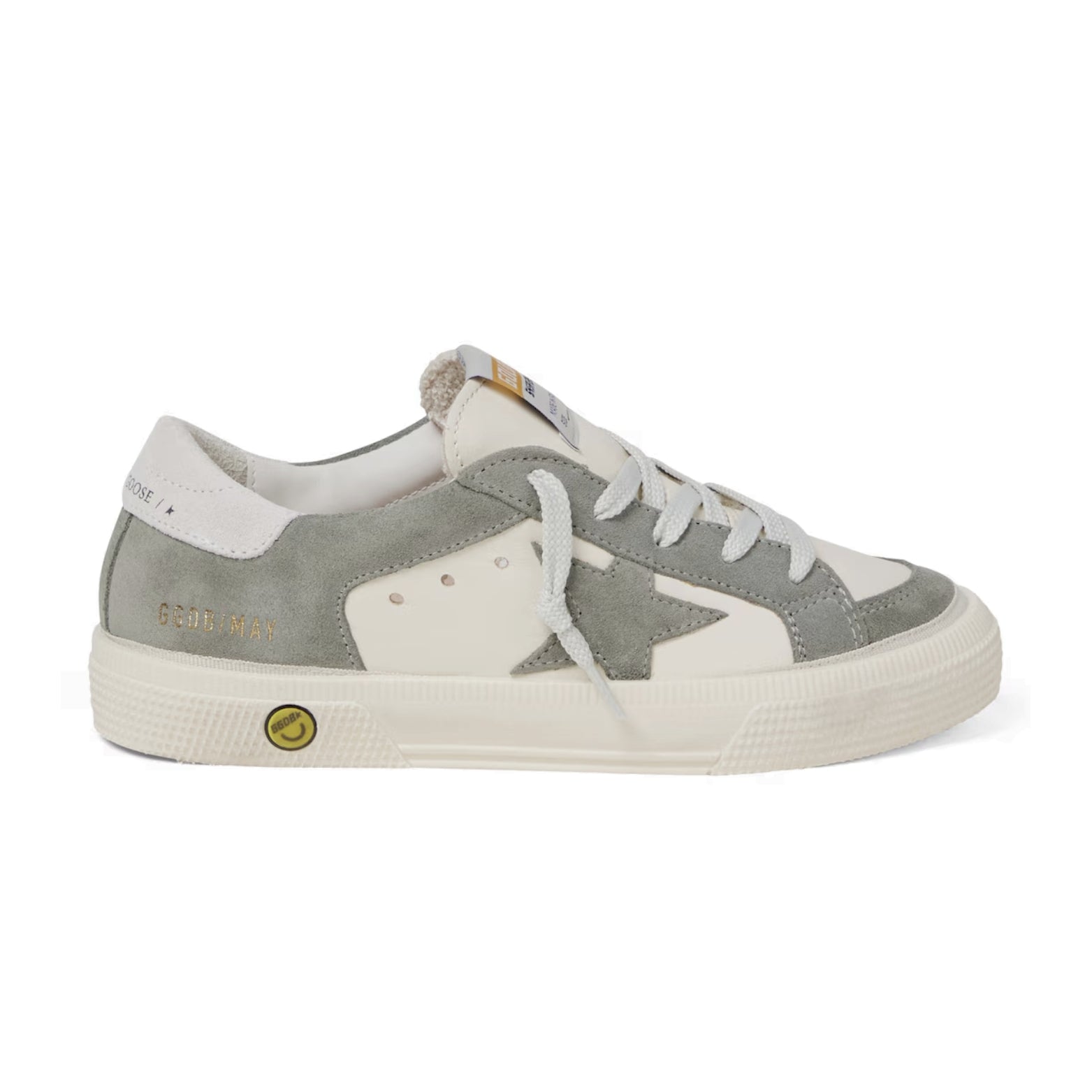 They'll feel like a style icon in the May sneakers from Golden Goose Kids. This white leather pair is punctuated with gray-ish green suede star appliqués and logo-detailed tongues and midsoles.