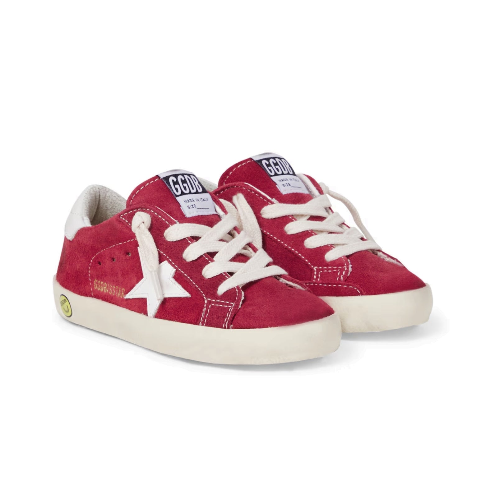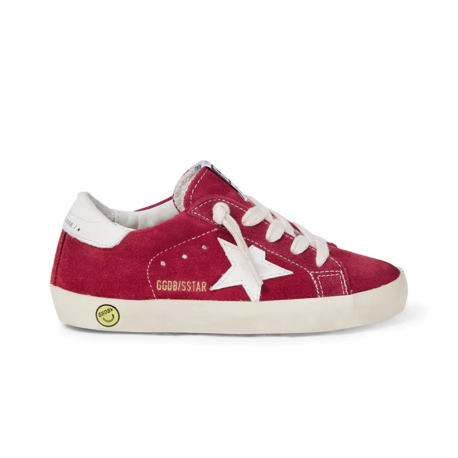 The Super-Star sneakers from Golden Goose Kids are made in Italy from smooth suede with plush linings. This pair features the brand's signature star-appliqués and classic lace-up closures.