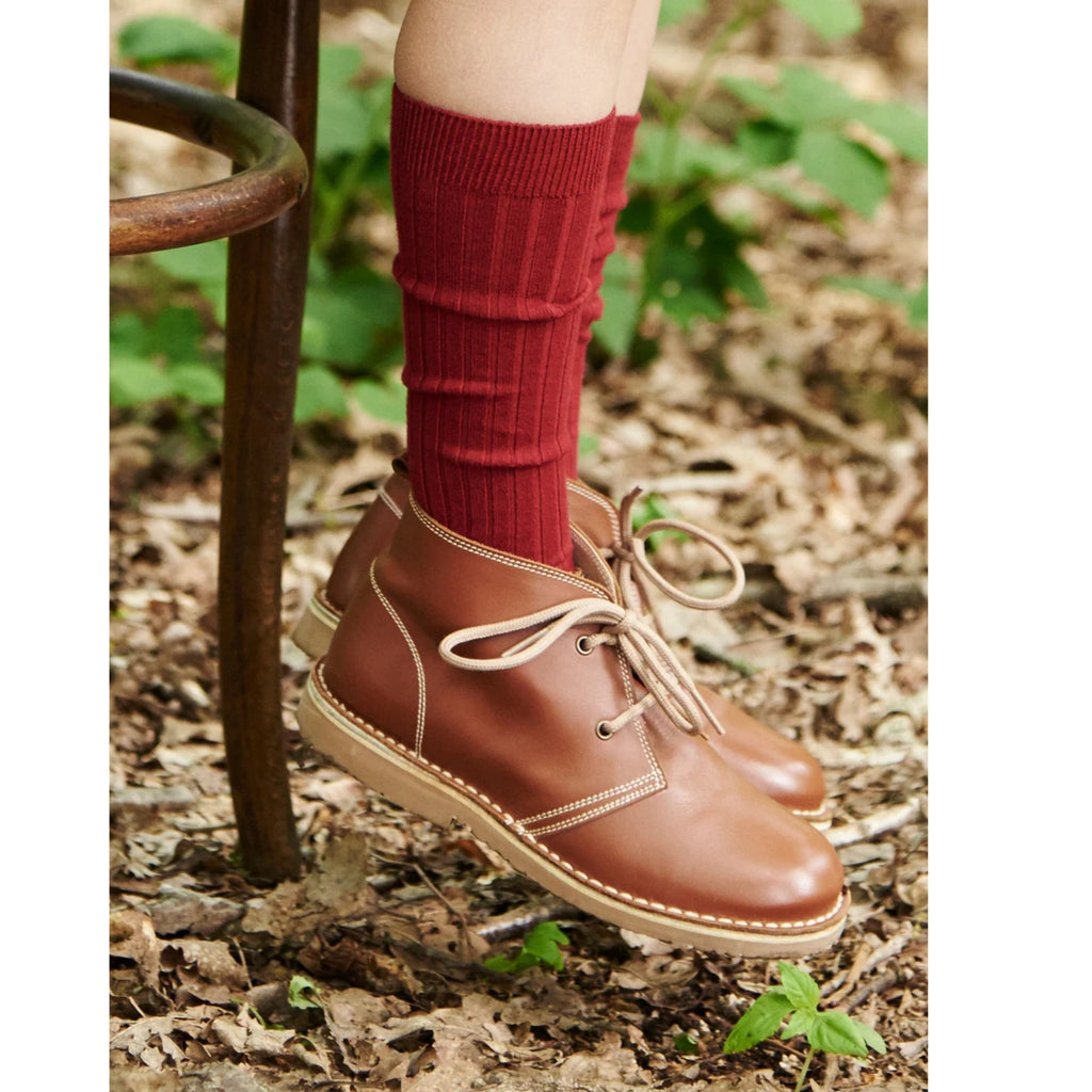 Ribbed Knee High Socks | Burgundy