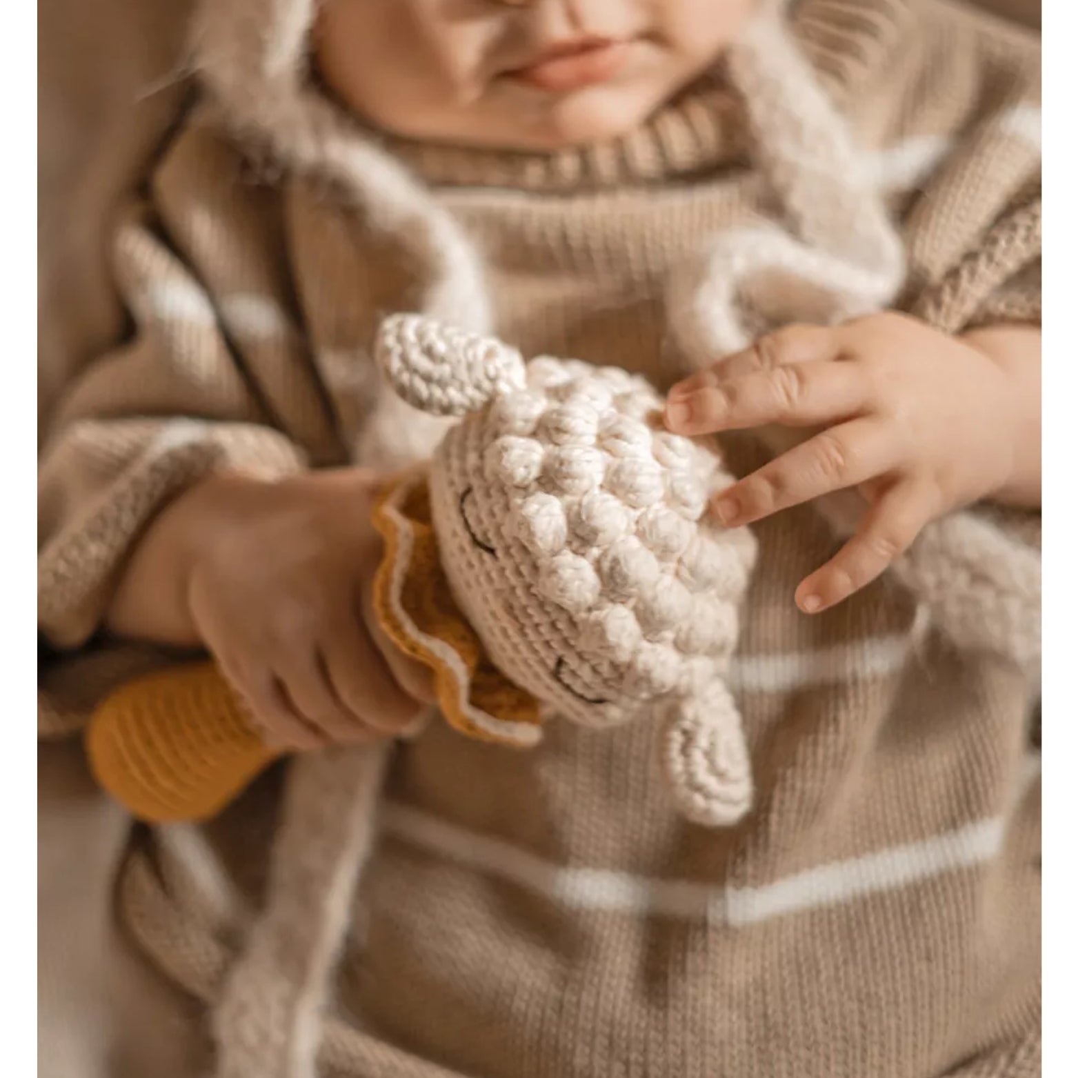 • Hand-crocheted with love using GOTS-certified organic cotton, this sweet rattle is perfect for little hands and sensitive skin