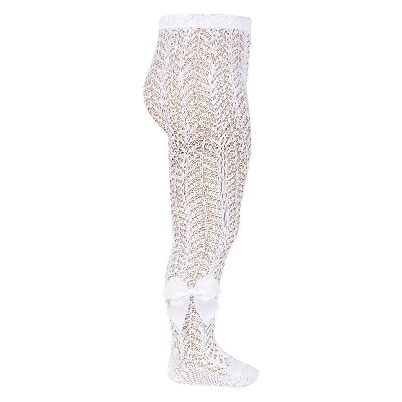 Openwork Perle Tights W/ Side Grossgrain Bow | White (200)