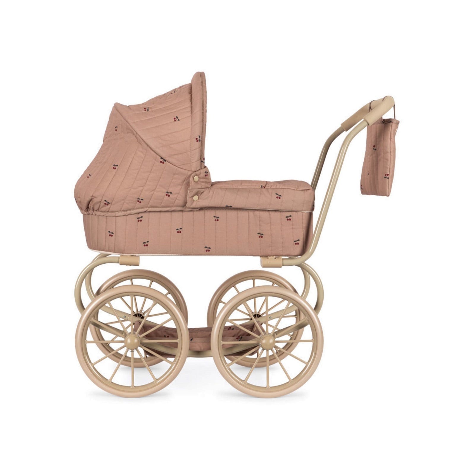 The Minnie Doll Pram brings a lovely nostalgic charm to the children's play universe. With an elegant metal frame, soft quilted fabric and adorable wave-edged details, it exudes vintage dreaminess. The soft mattress and padded storage basket make it perfect for dolls and stuffed animals, while the four large wheels ensure stability for curious little hands.