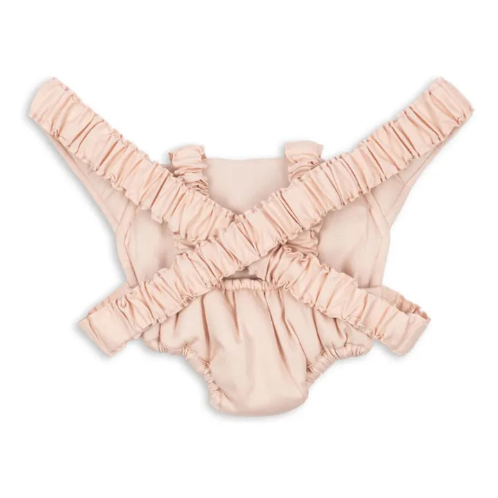 - Doll carrier for tiny doll parents. Designed with elasticated straps and scallop-shaped hems. The carrier is easy to use - comfortable and lightweight.