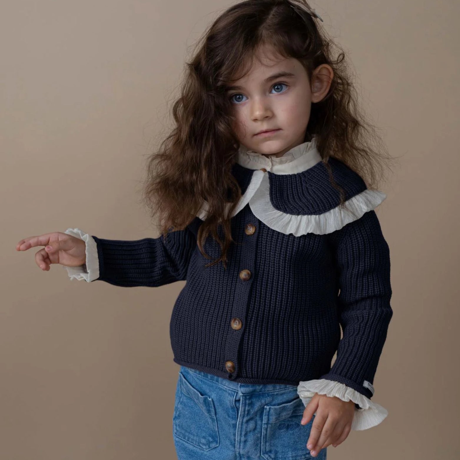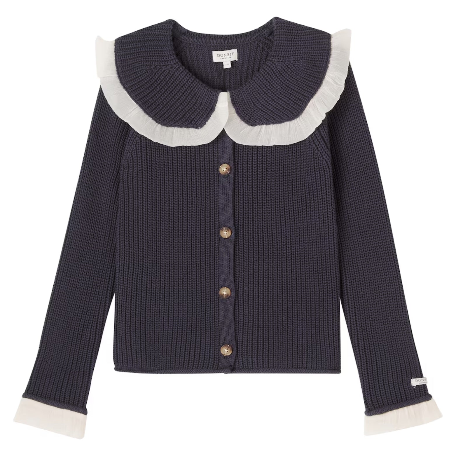 Delightfully detailed! The Zoila cardigan adds a touch of elegance to any outfit. Featuring button fastenings through the front and a charming ruffled collar, it’s a cosy and stylish layer for cooler days.