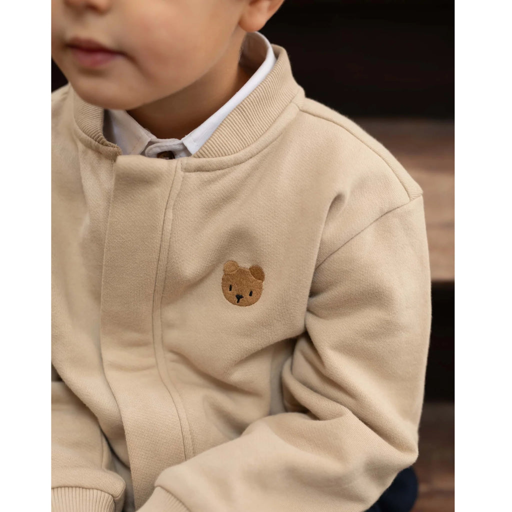 Your new best friend! Keep your little explorer warm and comfortable in the stylish Jansan Jacket as the days get cooler. Featuring a classic bomber silhouette, a small collar, a concealed zip fastening through the front, and front pockets to store all the tiny finds and treasures, the jacket also has beautiful bear embroidery on the chest. It's the perfect top layer for outdoor adventures, play, and discovery.