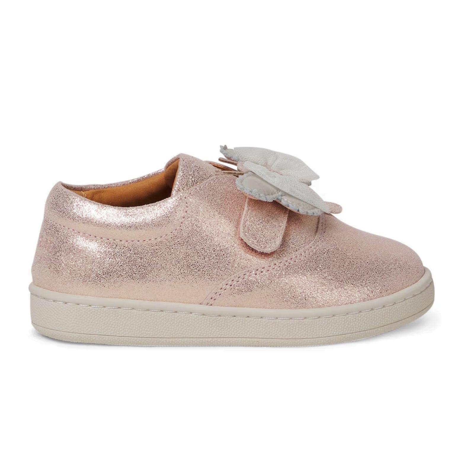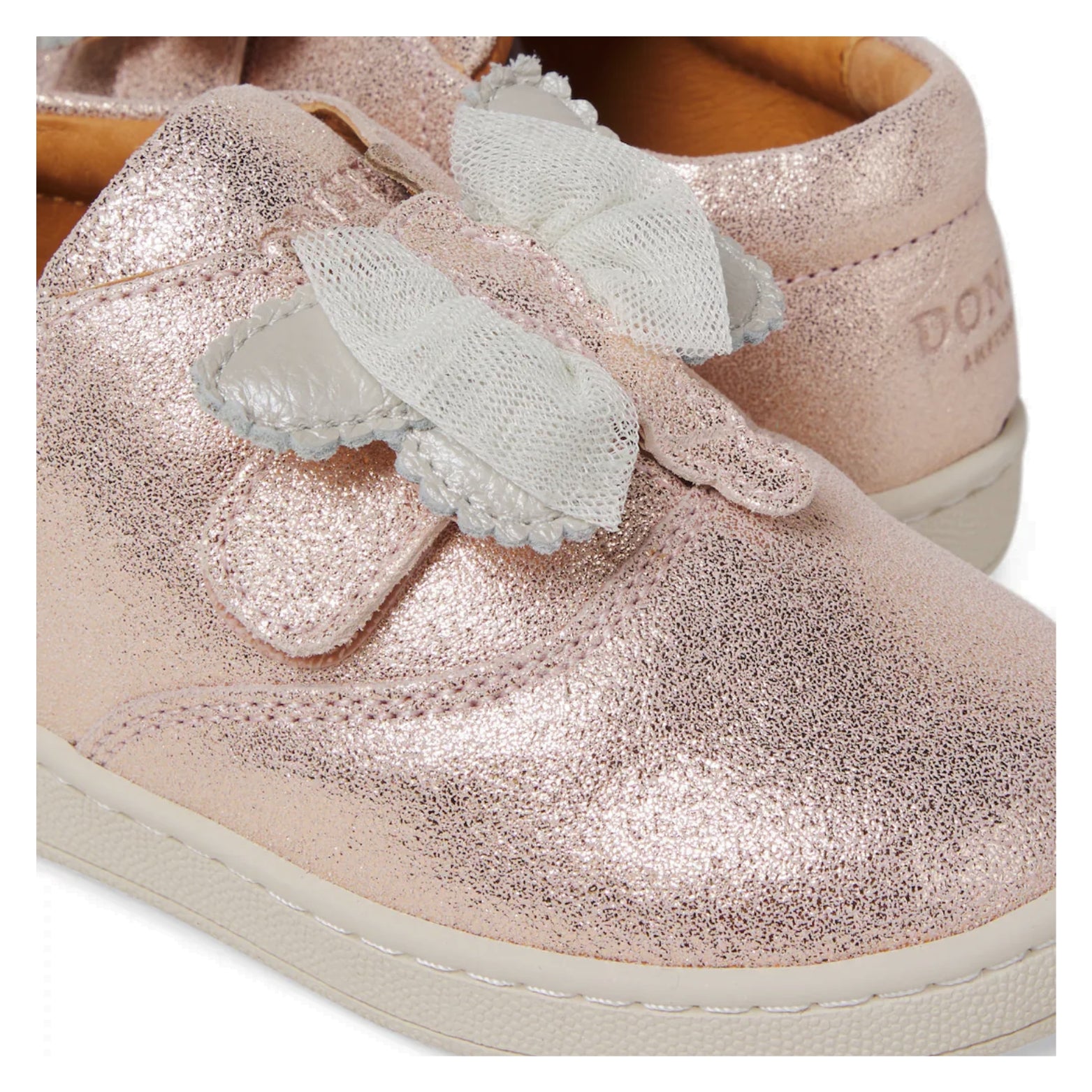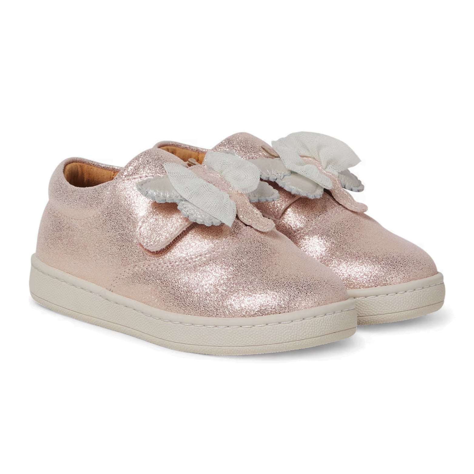 All Donsje designs are made using carefully handpicked materials to ensure the highest quality and durability. Crafted from pink-hued metallic leather, the sneakers feature VELCRO® fastenings with charming butterfly-shaped appliqués.