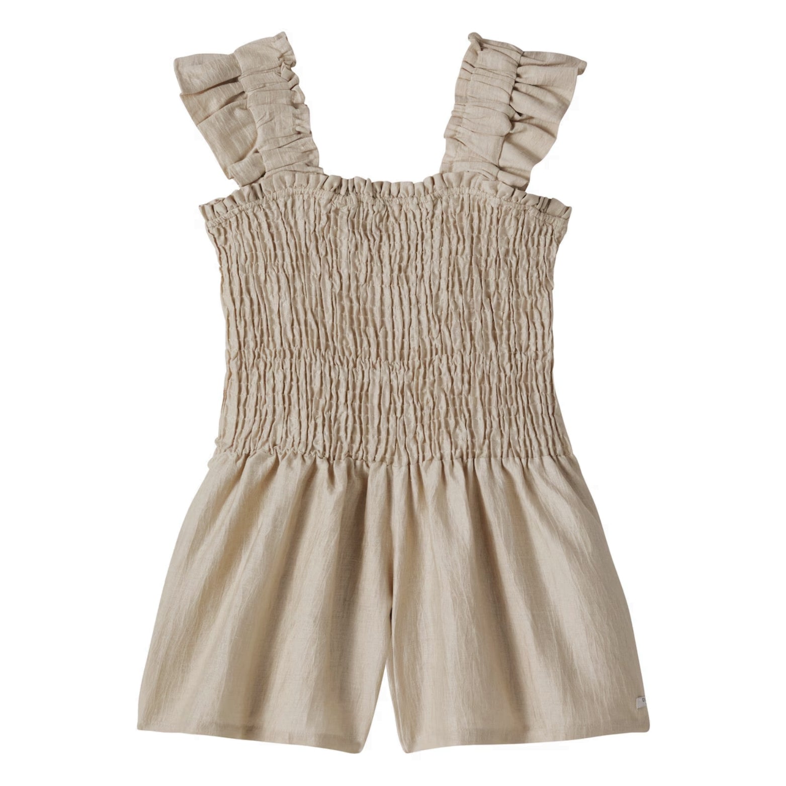 Smocked Hemp-blend Playsuit | Biscotti