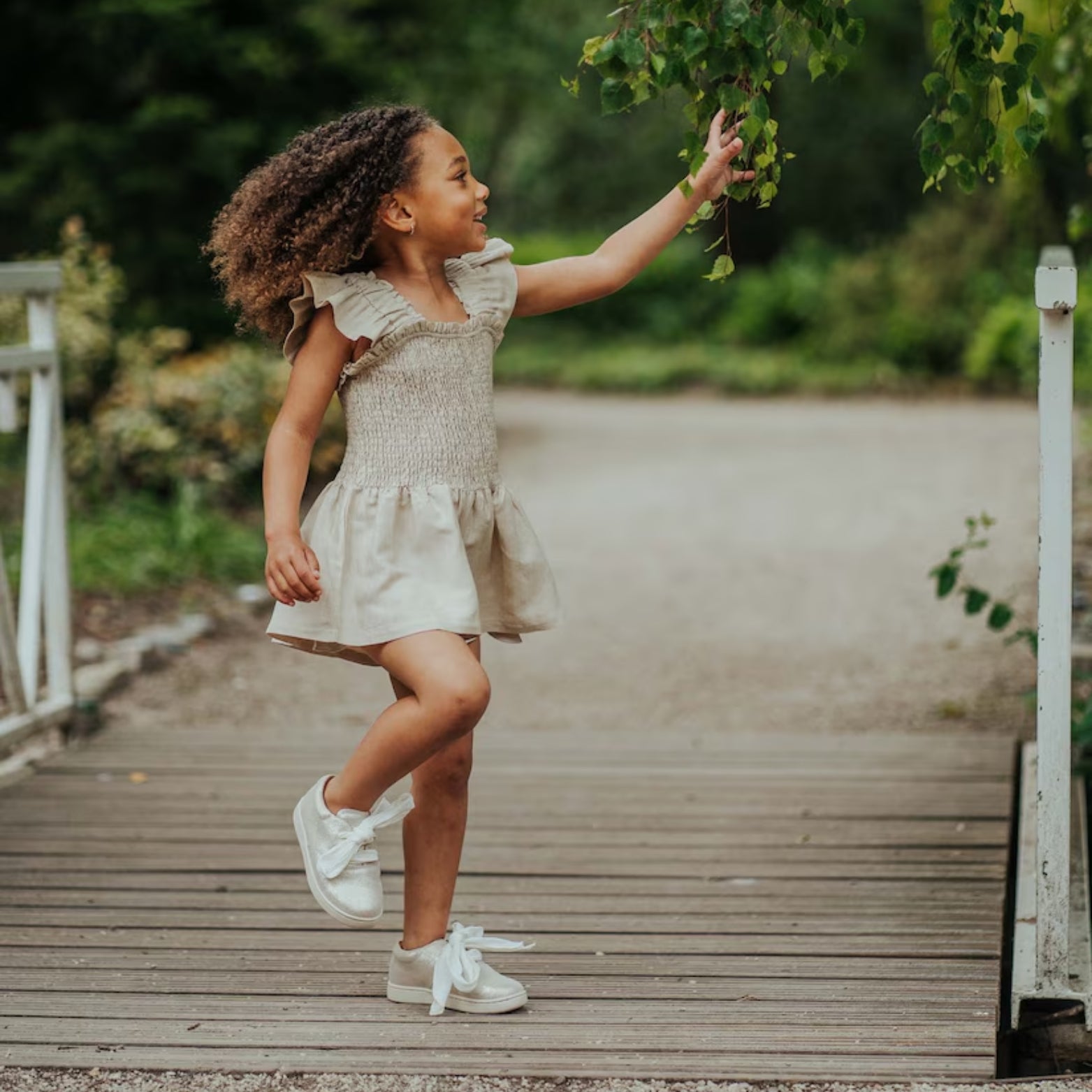 Amsterdam-based brand Donsje offers sustainably-sourced kidswear that exudes European cool. The playsuit is crafted from a hemp-blend and features a smocked bodice.