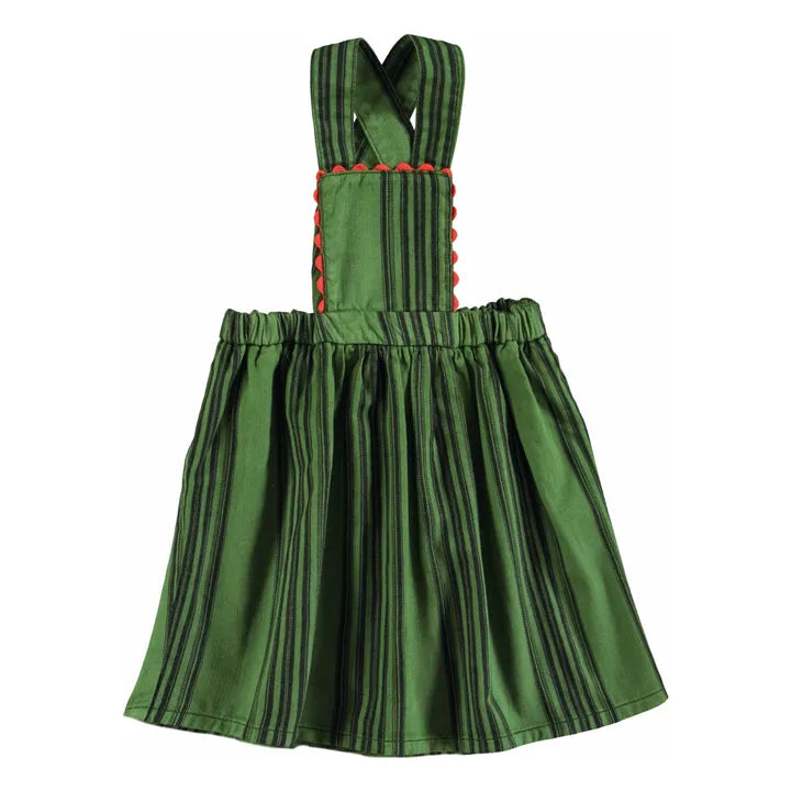 Striped Organic Cotton Apron Dress | Green