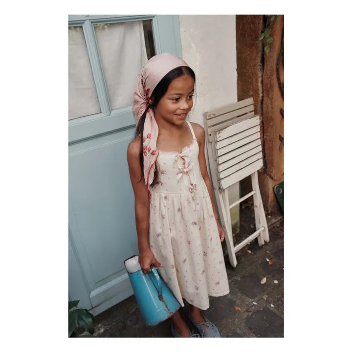Organic Cotton Flowered Knot Dress | Cream