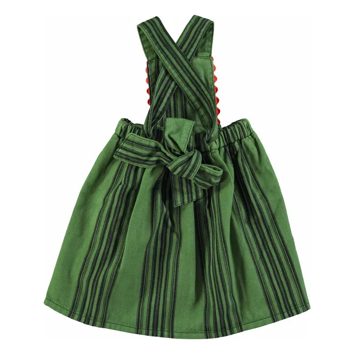 - Short dress in cotton canvas with crossed straps adjustable with a bow/knot. Detailed with orange spike on the chest.