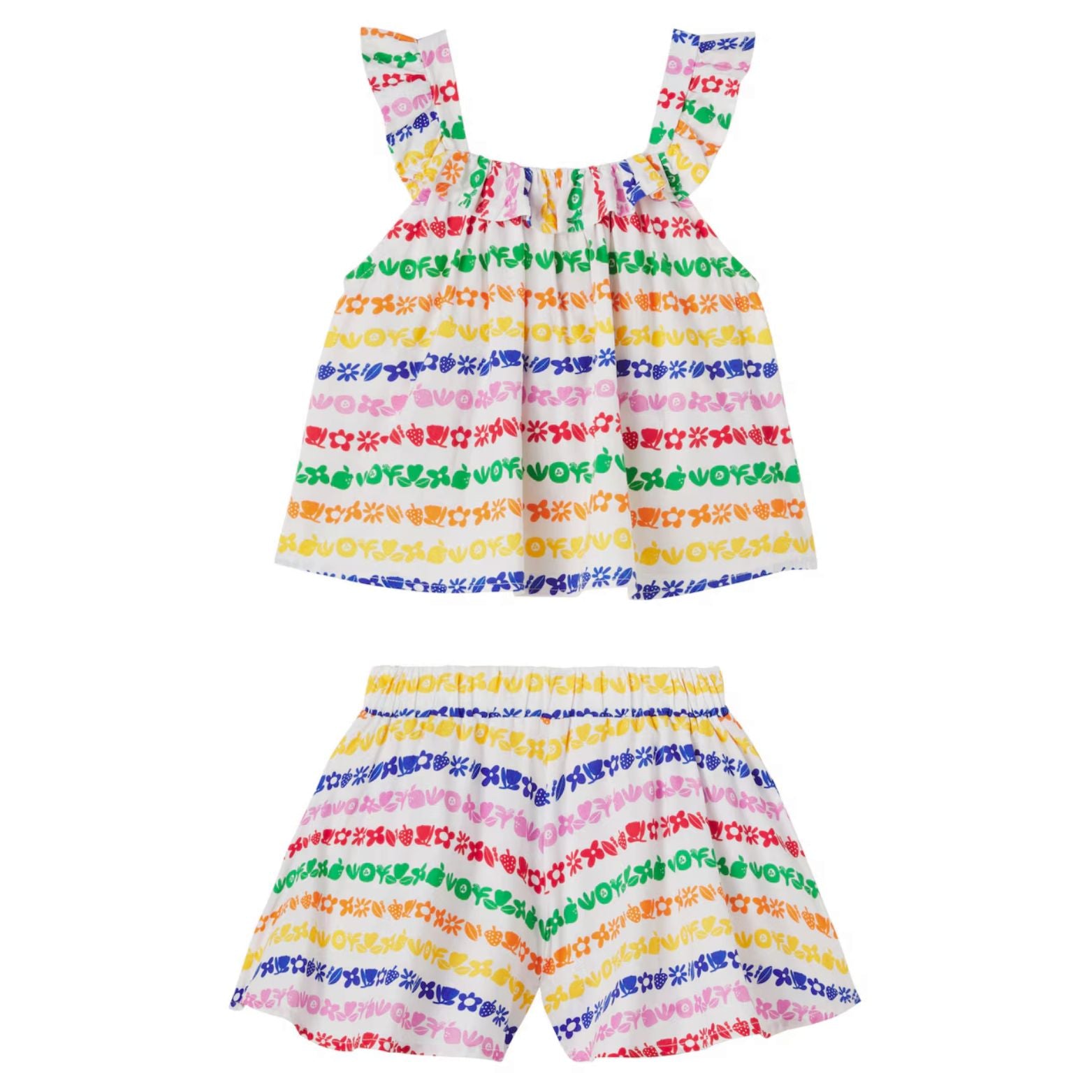 Playful Floral Fruits Stripes Top & Shorts