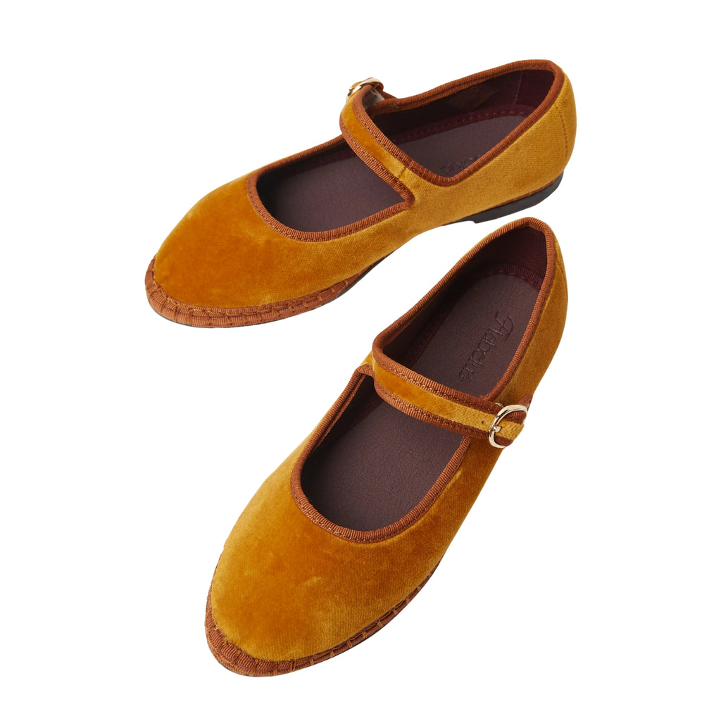 Amaranta Velvet Mary Jane Flats | Mustard Yellow