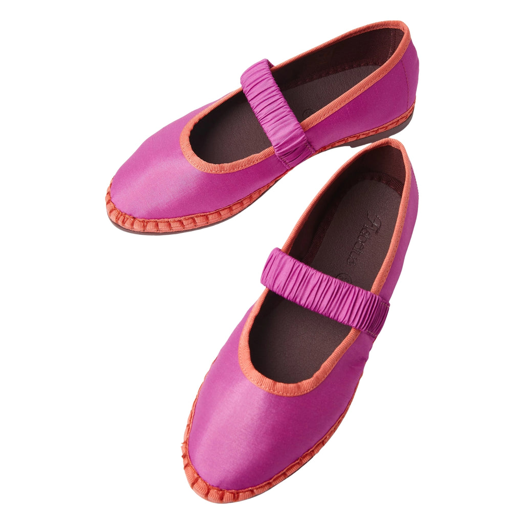 Handmade from lavish silk and framed by contrast piping, the Mafalda ballet flats are the epitome of playful elegance.