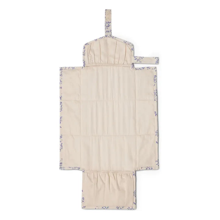 - Portable changing mat that gives little ones a clean and soft place to lie when you're away and it's time for a diaper change. It has spacious pockets on the inside to store diapers, wipes and an extra change of clothes. Made in organic cotton satin with BIONIC-FINISH® ECO treatment that makes it water and dirt repellent.