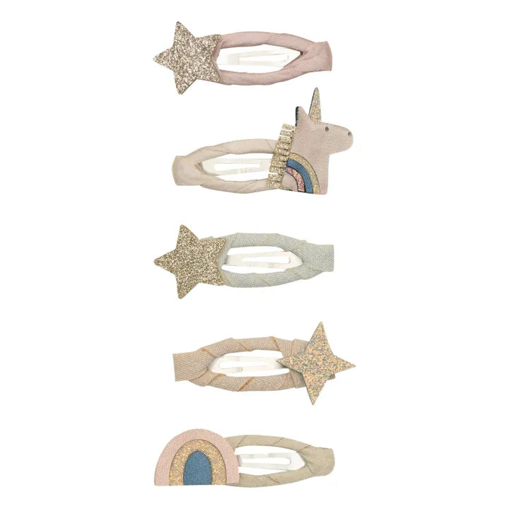 Pack of 5 Rainbow Mini Barrettes | Gold