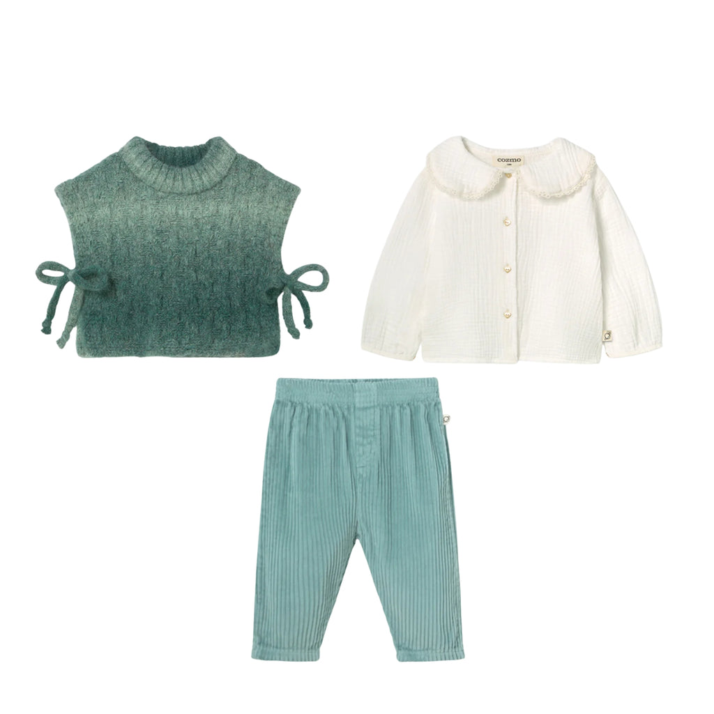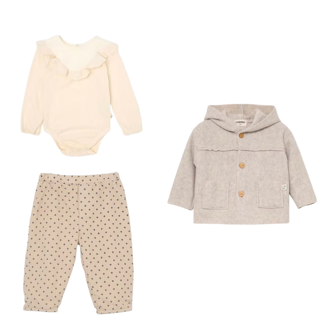 Baby Bamboo Coat & Corduroy Pants Flakes & Ruffle bodysuit