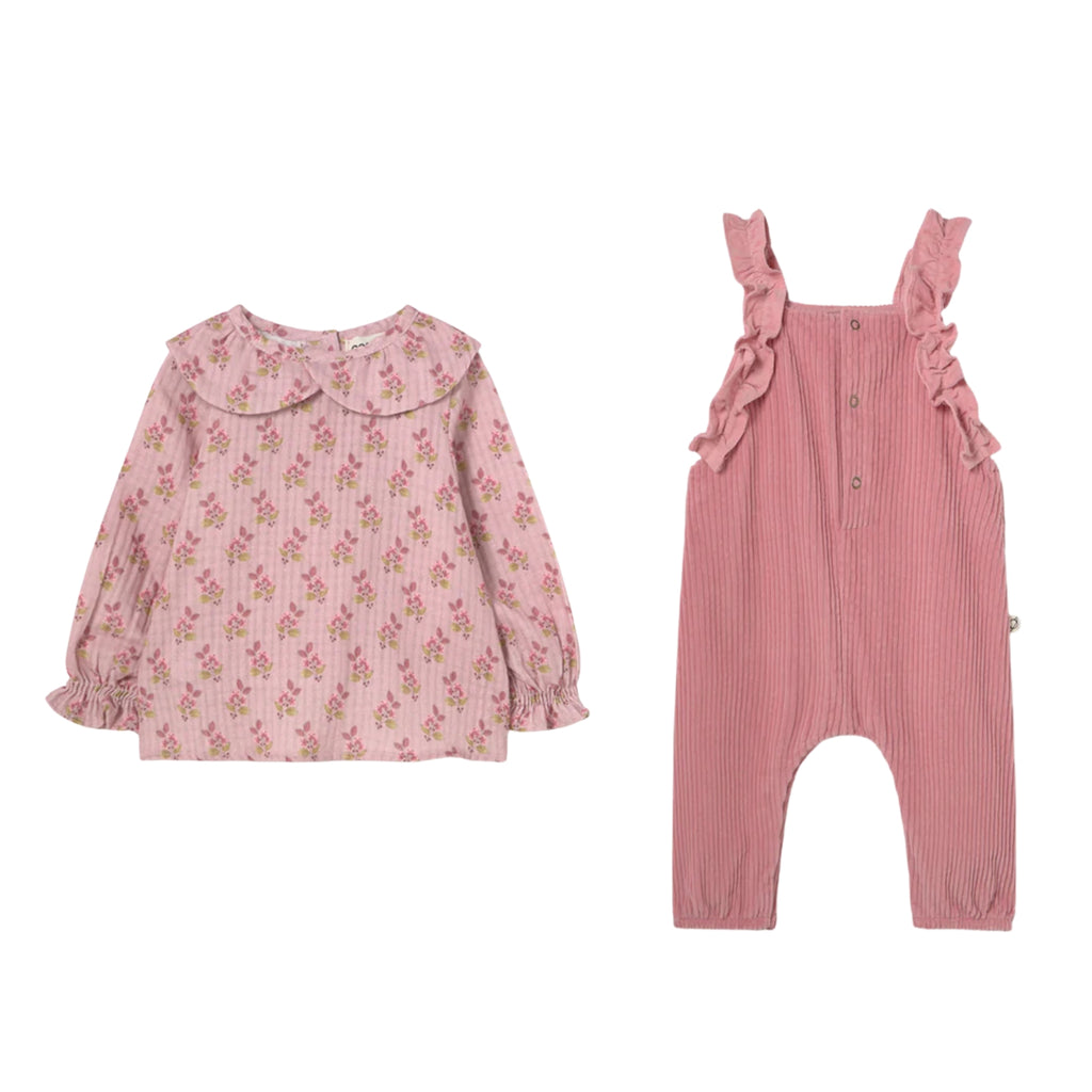 Baby Pink Floral Ruffle Blouse & Dungarees