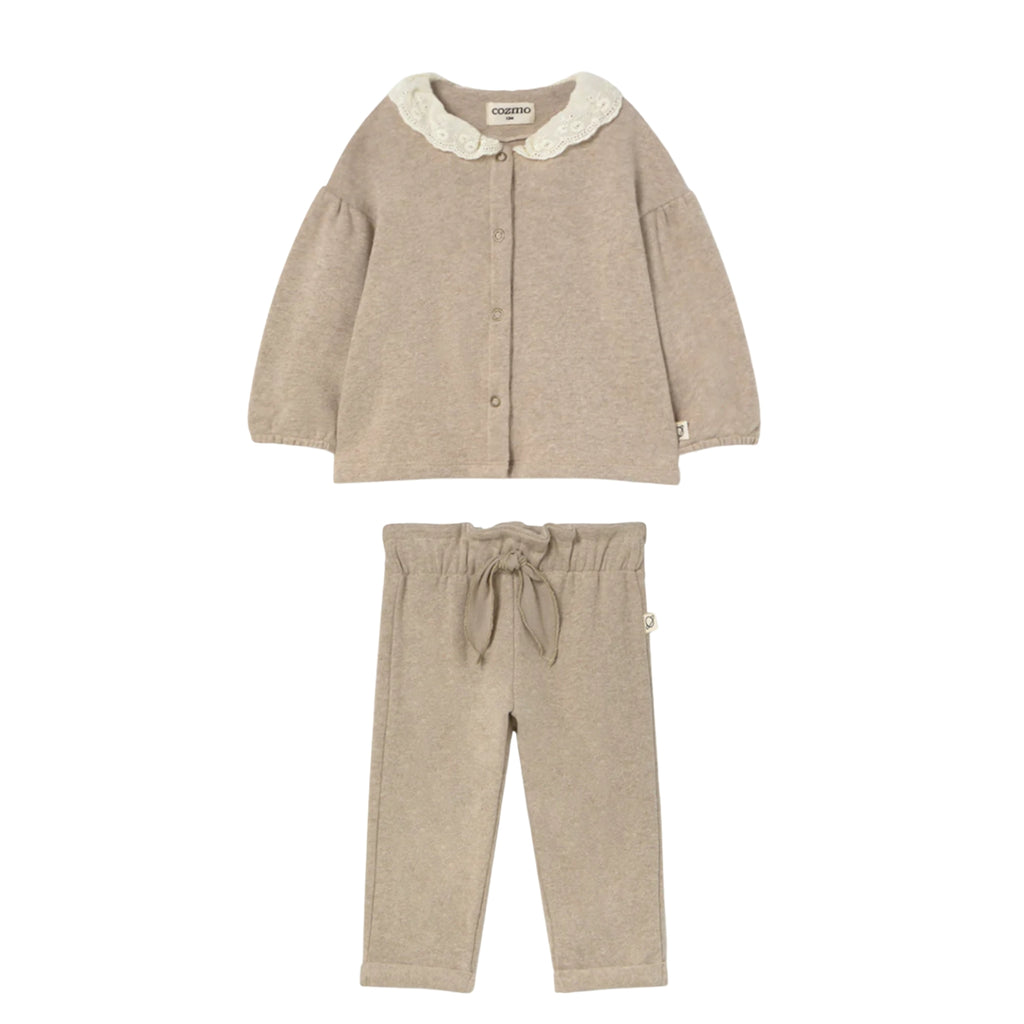 Baby Cotton-blend Cardigan And Sweatpants Set | Beige