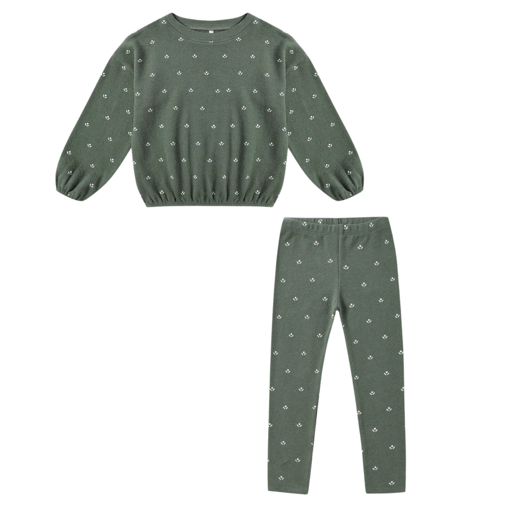 Spongy Boxy Sweatshirt & Legging | Evergreen Ditsy